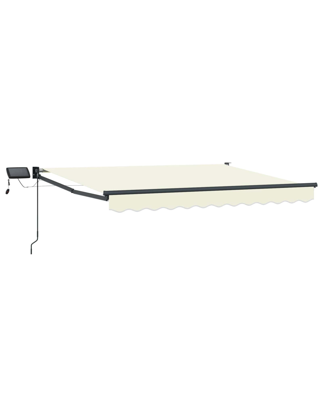 Questo tendone esterno con luci LED solari dà ombra e illuminazione per patii e terrazze. Grazie al suo design retrattile, puoi regolare la copertura dal sole come vuoi. Le luci LED si caricano durante il giorno e forniscono luce di sera, senza bisogno di una presa. Tessuto resistente all'acqua: Realizzato in poliestere con rivestimento in PU, è fatto per resistere a sole e pioggia. Ottimo per un uso esterno regolare, dà ombra in qualsiasi condizione. Struttura robusta: Il telaio in acciaio verniciato a polvere e alluminio offre una base solida. Resistente alla corrosione, mantiene stabile il tendone durante l'uso quotidiano. Funzionamento manuale: Puoi estendere o ritirare il tendone manualmente grazie alla maniglia a manovella. La struttura montata a muro permette di regolare l'area d'ombra secondo la luce solare. Illuminazione LED solare: Le luci LED si ricaricano durante il giorno, fornendo una luce base all'esterno la sera. Questo ti permette di avere un'illuminazione senza bisogno di una fonte di energia esterna. Componenti di montaggio: Include tutto il materiale necessario per l'installazione. Segui le istruzioni fornite per montarlo facilmente e in sicurezza.