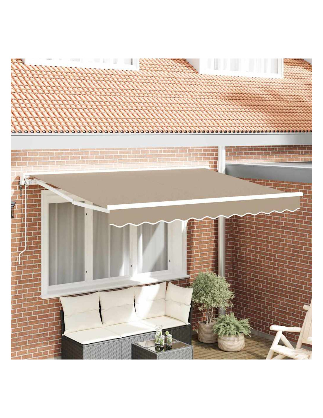 Questo ombrellone retrattile offre un'ombra pratica per i tuoi spazi esterni, come giardini e terrazze. Può essere facilmente aperto o chiuso per regolare la luce solare e il riparo secondo i tuoi bisogni. È perfetto per mangiare all'aperto, rilassarsi o ricevere amici, creando un ambiente più confortevole mentre ti protegge dal sole e dalla pioggia leggera. È un'ottima aggiunta per goderti al meglio gli spazi esterni durante tutto l'anno. Materiali durevoli: Realizzato in poliestere con rivestimento PU resistente agli agenti atmosferici. La struttura in acciaio verniciato e alluminio offre supporto stabile per l'uso quotidiano all'aperto. Operazione regolabile: Puoi azionare l'ombrellone con una manovella manuale o un telecomando elettrico, per estenderlo o ritirarlo facilmente a seconda di quanto ombra ti serve. Struttura semi-cassettata: Il design con bracci retrattabili e un rullo in alluminio permette un'estensione e un ritiro fluidi, proteggendo il tessuto quando non lo usi. Ombra all'aperto: Adatto per patii, giardini e terrazze, il design retrattile ti lascia regolare l'area ombreggiata secondo la luce solare. Requisiti di installazione: L'ombrellone è pensato per essere montato a parete e servono strumenti base come cacciavite, trapano e pinza. Segui le istruzioni per montarlo correttamente e in sicurezza.