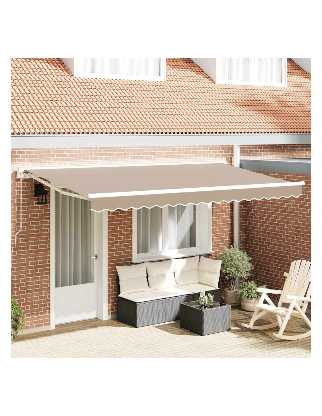 Questo ombrellone retrattile offre un'ombra pratica per i tuoi spazi esterni, come giardini e terrazze. Può essere facilmente aperto o chiuso per regolare la luce solare e il riparo secondo i tuoi bisogni. È perfetto per mangiare all'aperto, rilassarsi o ricevere amici, creando un ambiente più confortevole mentre ti protegge dal sole e dalla pioggia leggera. È un'ottima aggiunta per goderti al meglio gli spazi esterni durante tutto l'anno. Materiali durevoli: Realizzato in poliestere con rivestimento PU resistente agli agenti atmosferici. La struttura in acciaio verniciato e alluminio offre supporto stabile per l'uso quotidiano all'aperto. Operazione regolabile: Puoi azionare l'ombrellone con una manovella manuale o un telecomando elettrico, per estenderlo o ritirarlo facilmente a seconda di quanto ombra ti serve. Struttura semi-cassettata: Il design con bracci retrattabili e un rullo in alluminio permette un'estensione e un ritiro fluidi, proteggendo il tessuto quando non lo usi. Ombra all'aperto: Adatto per patii, giardini e terrazze, il design retrattile ti lascia regolare l'area ombreggiata secondo la luce solare. Requisiti di installazione: L'ombrellone è pensato per essere montato a parete e servono strumenti base come cacciavite, trapano e pinza. Segui le istruzioni per montarlo correttamente e in sicurezza.
