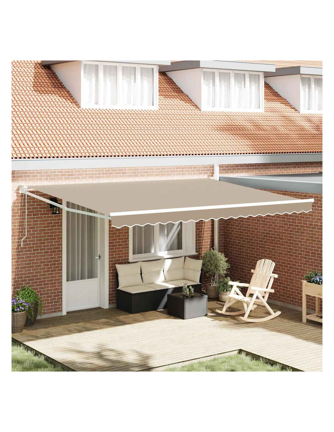 Questo Ombrello Retrattile è pensato per essere pratico e bello da vedere. È perfetto per il tuo giardino o terrazzo, con un aspetto moderno che si sposa bene con gli spazi esterni. Il suo colore beige neutro si integra facilmente con vari mobili da esterno, offrendoti una zona d'ombra confortevole. Il design regolabile lo rende perfetto per diverse situazioni, che sia per prendere un po'di sole o per cene all'aperto. Il robusto telaio e i materiali resistenti ai raggi UV fanno di questo ombrellone un elemento affidabile per l'estate. Materiali: Questo ombrellone è fatto di poliestere e metallo resistenti, scelti per la loro solidità. Il tessuto in poliestere resiste agli agenti atmosferici, soprattutto ai raggi UV, mantenendo l'ombrellone in ottimo stato a lungo. Il telaio in metallo offre stabilità, assicurando che l'ombrellone rimanga saldo anche nei giorni ventosi. Componenti inclusi: Il pacchetto comprende il telo dell'ombrellone e il telaio. Il telo misura 450 x 300 cm, offrendo ampia ombra. Le dimensioni del telaio sono di 450 x 300 x 165 cm, per un allestimento bilanciato e pratico. Insieme, questi pezzi ti aiutano a proteggerti dal sole intenso durante le attività all'aperto. Caratteristiche/Funzione/Design: La funzione retrattile ti permette di regolare l'ombrellone con facilità, massimizzando il controllo sulla tua ombra. Ottimizza il tuo tempo all'aperto proteggendoti dal sole o godendoti più luce, a seconda delle tue esigenze. Questa flessibilità rende i tuoi spazi esterni adattabili alle condizioni climatiche. Usi consigliati: Questo ombrellone è perfetto per giardini e terrazze, migliorando gli spazi esterni sia residenziali che commerciali. Ti offre riparo per rilassarti, cenare o organizzare eventi, ed è una soluzione versatile per tronare al fresco durante i mesi estivi. Che sia un barbecue o una mattinata tranquilla, è davvero molto utile. Manutenzione e cura: Per un utilizzo prolungato, ricordati di ritirare l'ombrellone durante il maltempo per proteggerlo. Pulisci il tessuto con una soluzione di sapone delicato quando serve, evitando prodotti abrasivi. Prenderti cura di questo ombrellone garantirà che resti bello e funzionale nel tempo.