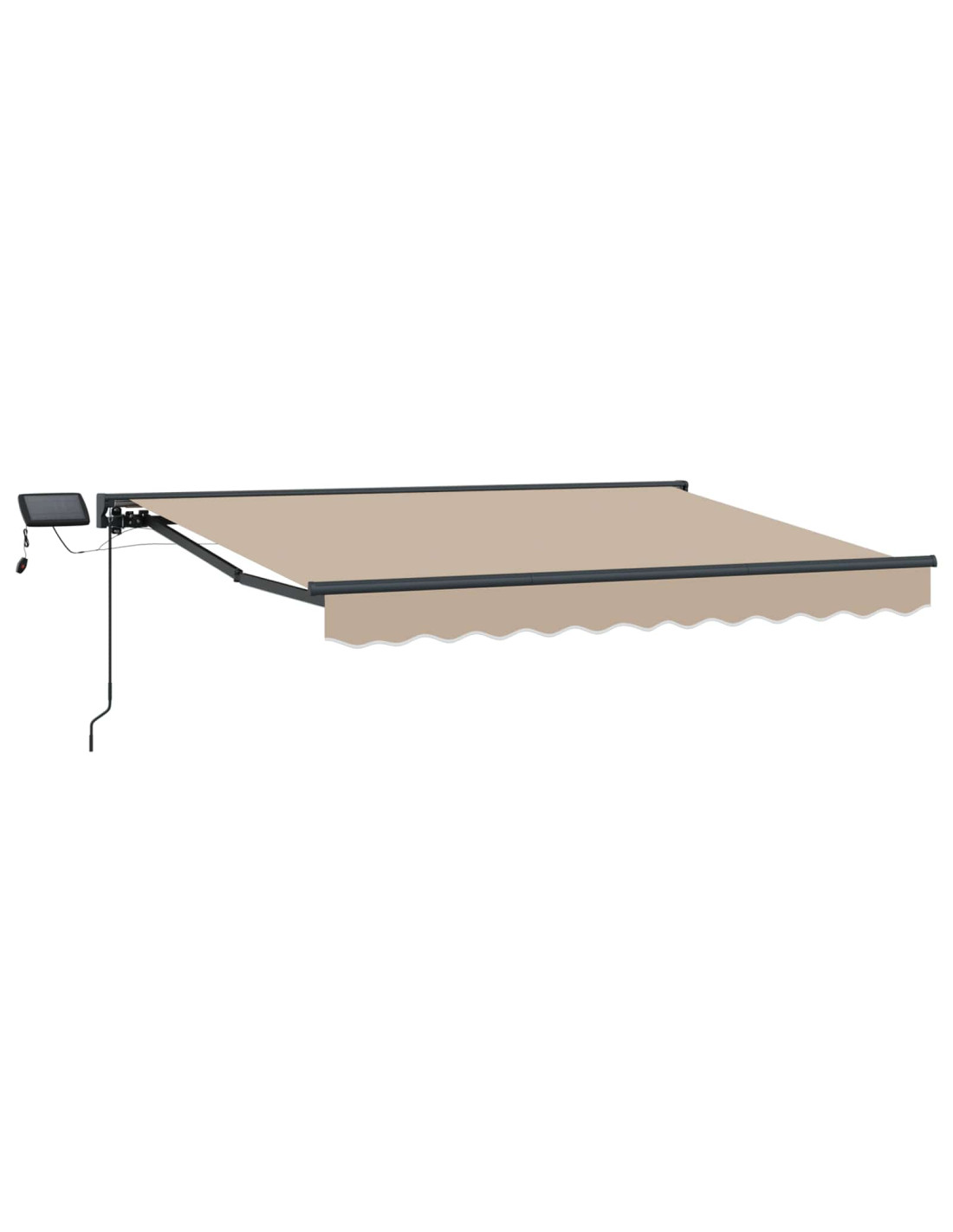 Questa tenda manuale moderna con luci LED è un must have per gli spazi all'aperto: è semplice e funzionale. Pensata per impreziosire giardini e terrazze, offre un riparo elegante, migliorando le abitazioni e gli spazi commerciali con il suo design chic. È perfetta per chi cerca uno stile contemporaneo e ridefinisce il comfort all'aperto, fornendo ombra personalizzabile e una bella luce LED per divertirsi tutto l'anno. Materiali top: La tenda è realizzata con un telaio in alluminio verniciato a polvere e tessuto in poliestere, garantendo resistenza e durata. Questi materiali sono stati scelti per evitare scolorimenti e rendere la tenda sempre bella, qualunque sia il clima. Illuminazione integrata: Con luci LED, la tenda non solo offre ombra di giorno, ma illumina anche il tuo spazio di notte. I LED a risparmio energetico offrono una luce calda che rende ogni serata più accogliente. Design pratico: Il design semi-cassettato e le braccia retrattili robusti uniscono funzionalità e stile. Puoi usarla manualmente o con un telecomando, così hai il pieno controllo dell'ombra e della luce. Versatilità: Perfetta per giardini e terrazze, la tenda si adatta a ogni evento all'aperto. Passa facilmente da ombra a sorgente luminosa notturna, aumentando il comfort e la praticità. Manutenzione semplice: Montarla è facile e serve solo un cacciavite e un trapano. Il design riduce la manutenzione, con una superficie verniciata che semplifica la pulizia e mantiene l’aspetto elegante.