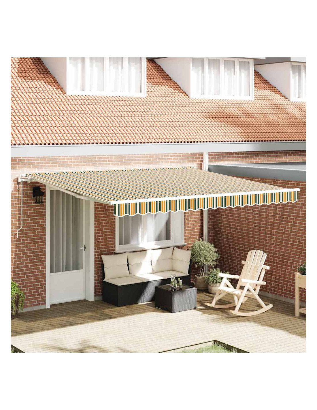 - Poliestere di qualità con rivestimento PU: Questo awing è fatto di poliestere con rivestimento PU, resiste a tutte le intemperie e dura nel tempo. Questo materiale rifiuta l'acqua, non assorbe calore e protegge dal sole, rendendo i tuoi spazi esterni un rifugio confortevole anche con caldo estivo o piogge improvvise.