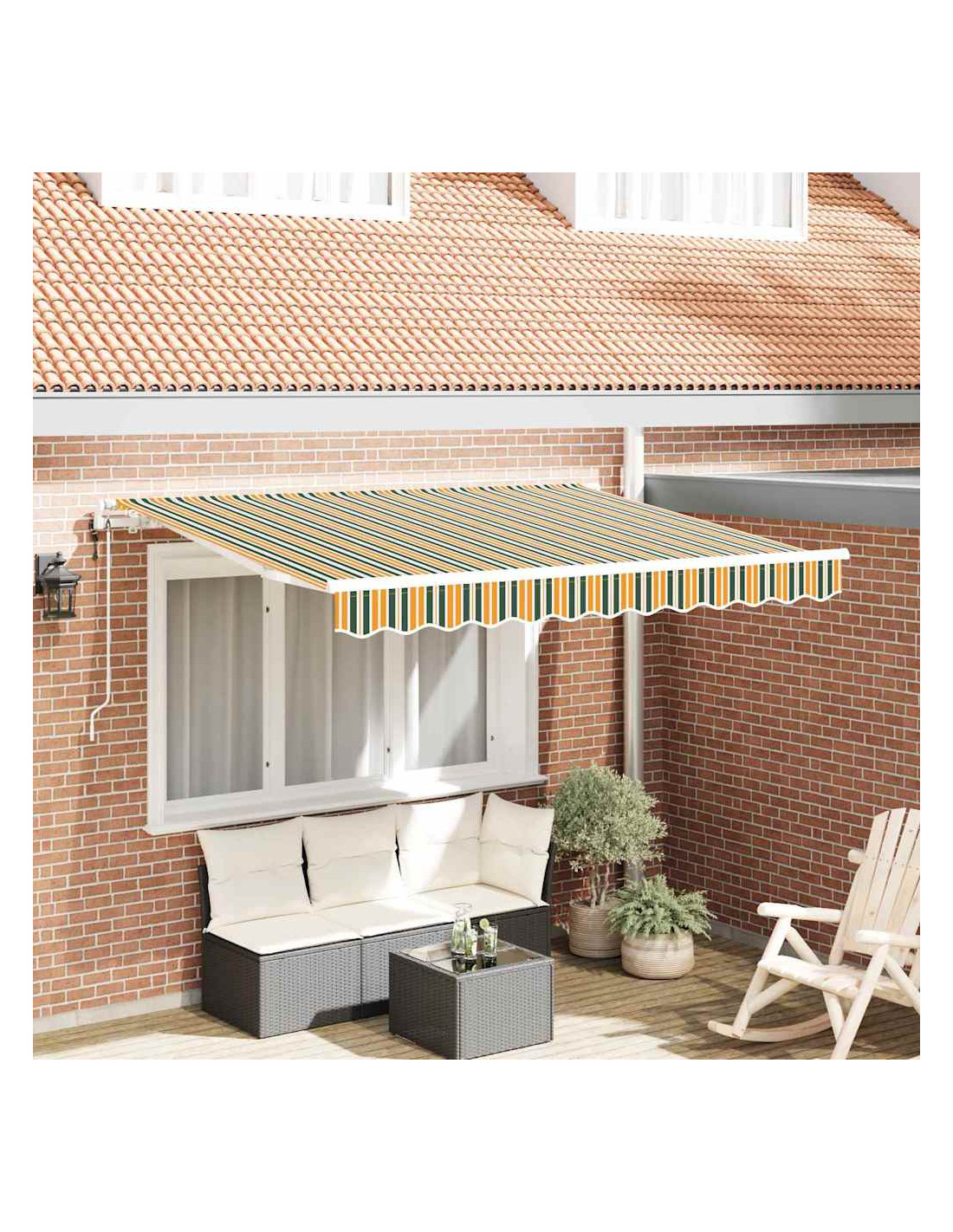 Questa moderna tenda retrattile è perfetta per giardini e terrazze. Unisce stile e funzionalità, con un design elegante e rigato che offre ombra dai raggi solari in estate.