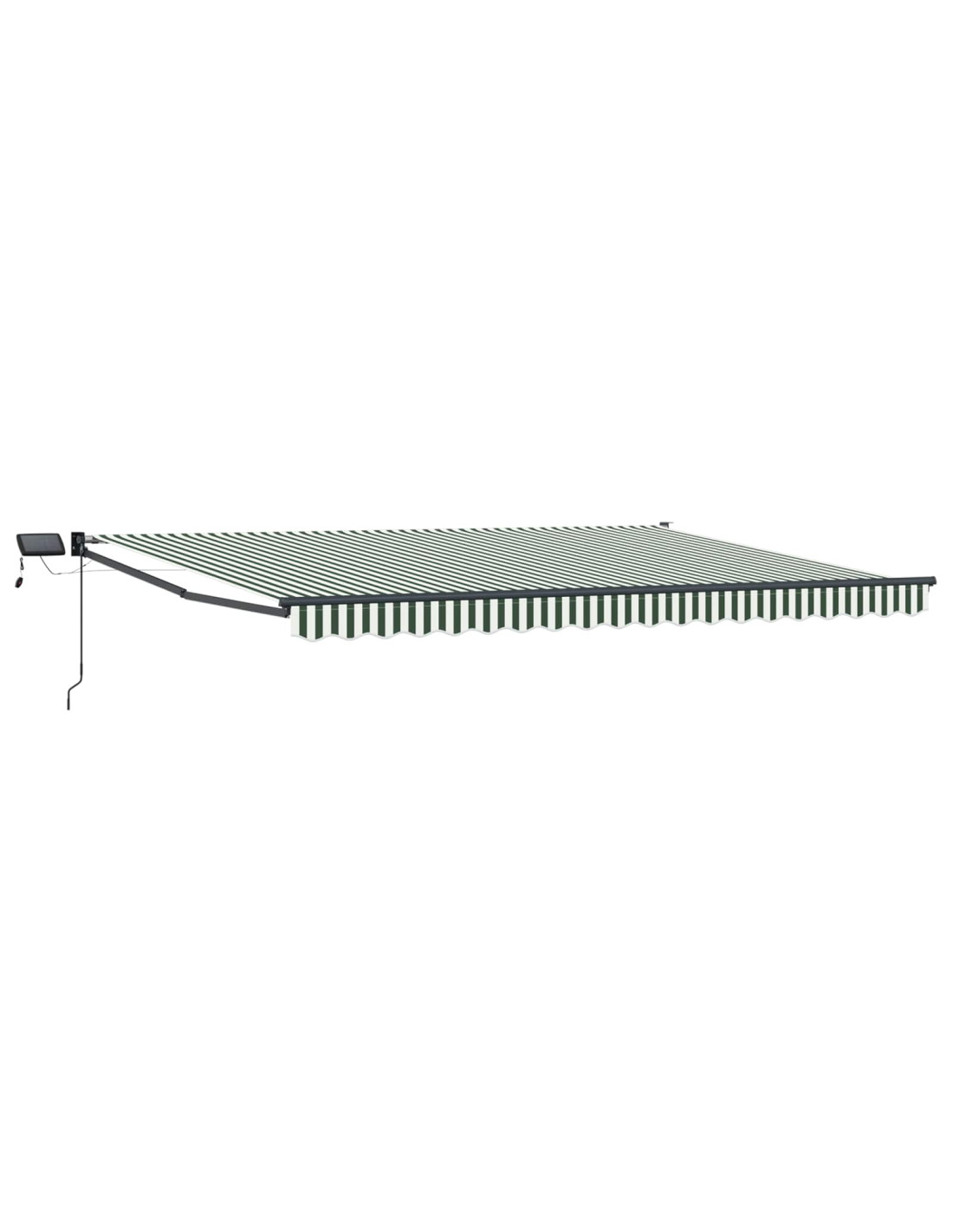 Questo tendone esterno con luci LED solari dà ombra e illuminazione per patii e terrazze. Grazie al suo design retrattile, puoi regolare la copertura dal sole come vuoi. Le luci LED si caricano durante il giorno e forniscono luce di sera, senza bisogno di una presa. Tessuto resistente all'acqua: Realizzato in poliestere con rivestimento in PU, è fatto per resistere a sole e pioggia. Ottimo per un uso esterno regolare, dà ombra in qualsiasi condizione. Struttura robusta: Il telaio in acciaio verniciato a polvere e alluminio offre una base solida. Resistente alla corrosione, mantiene stabile il tendone durante l'uso quotidiano. Funzionamento manuale: Puoi estendere o ritirare il tendone manualmente grazie alla maniglia a manovella. La struttura montata a muro permette di regolare l'area d'ombra secondo la luce solare. Illuminazione LED solare: Le luci LED si ricaricano durante il giorno, fornendo una luce base all'esterno la sera. Questo ti permette di avere un'illuminazione senza bisogno di una fonte di energia esterna. Componenti di montaggio: Include tutto il materiale necessario per l'installazione. Segui le istruzioni fornite per montarlo facilmente e in sicurezza.