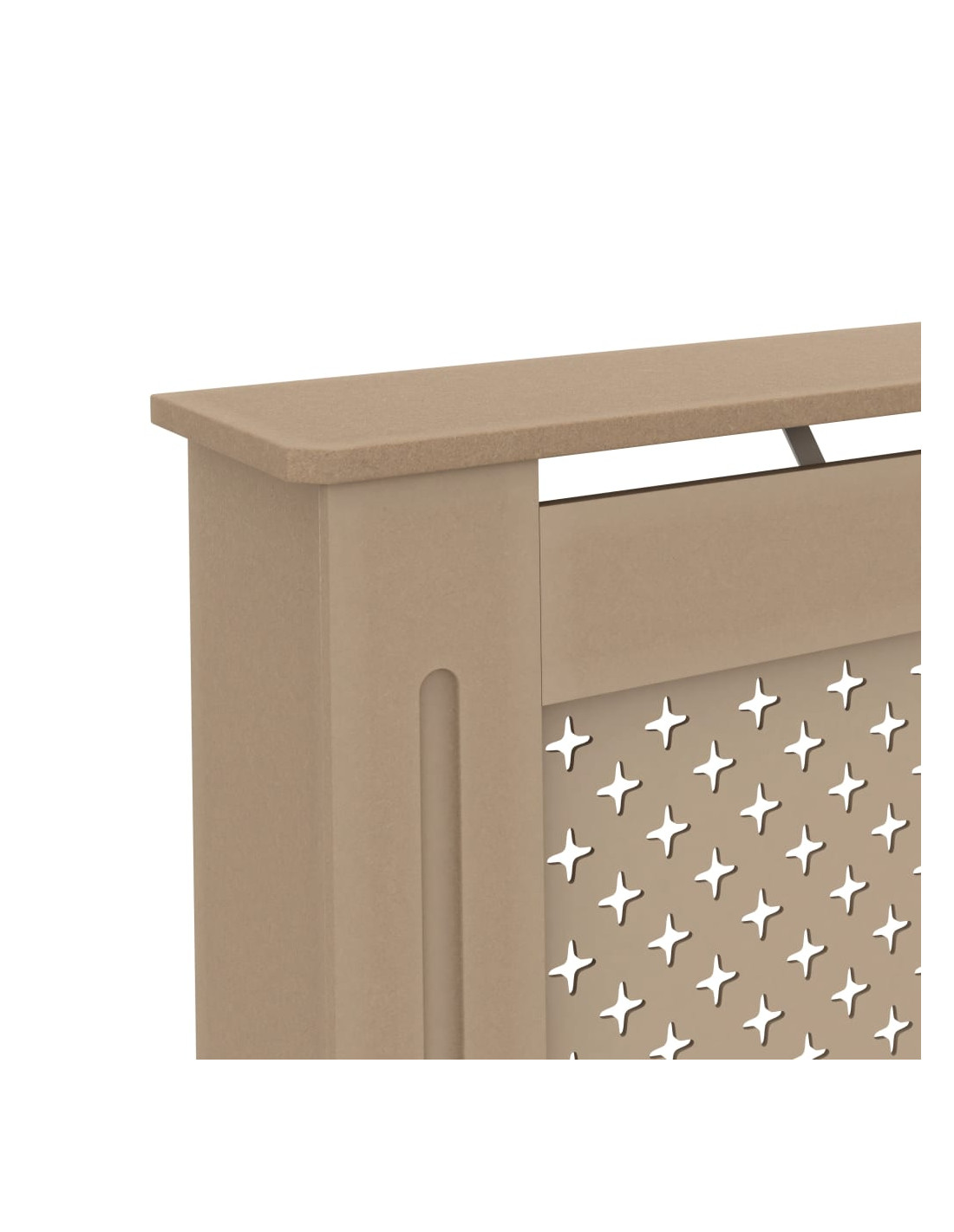 Il robusto e resistente mobile per radiatore è realizzato in MDF. Il mobile di copertura del radiatore ha un design moderno a doghe che si adatta a qualsiasi arredamento.
