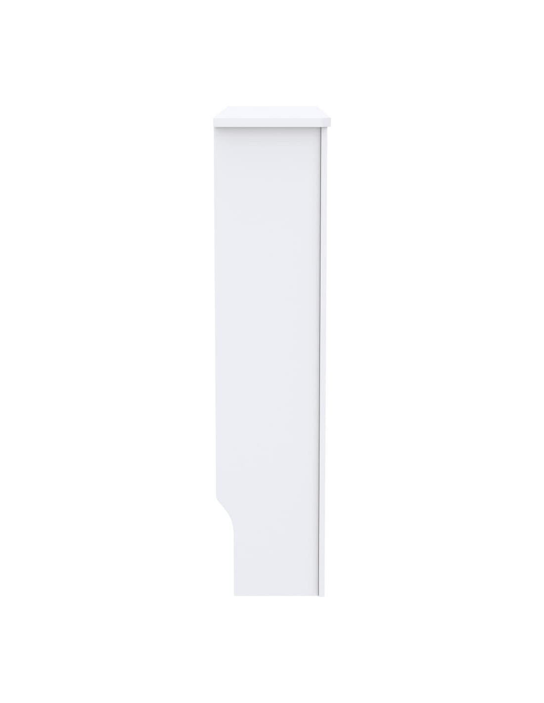 Questo copritermosifone è realizzato in MDF, robusto e durevole. Presenta un moderno design a doghe, che lo rende adatto a qualsiasi tipo di arredamento. Lo scaffale offre ampio spazio per posizionare libri, foto, ornamenti, ecc.