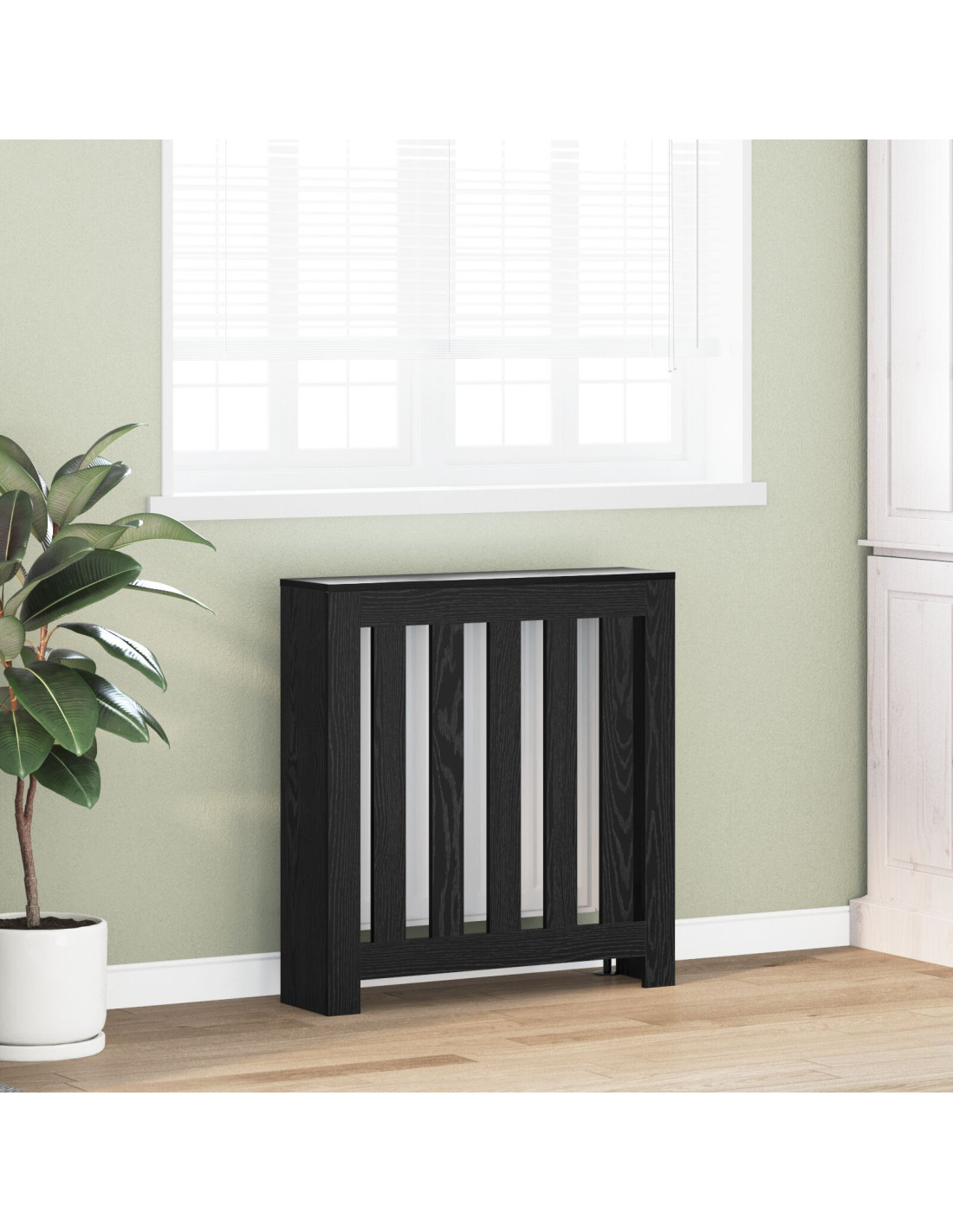 Questa copertura per radiatore in legno ingegnerizzato è perfetta per qualsiasi arredamento del soggiorno, offrendo anche vantaggi pratici. La sua forma rettangolare e snella, con poca decorazione, garantisce un aspetto pulito e moderno, ideale per chi cerca essenziali che migliorano l'estetica. Creata per interni, si adatta bene accanto a pareti o sotto finestre, proteggendo i radiatori e offrendo spazio extra per oggetti.