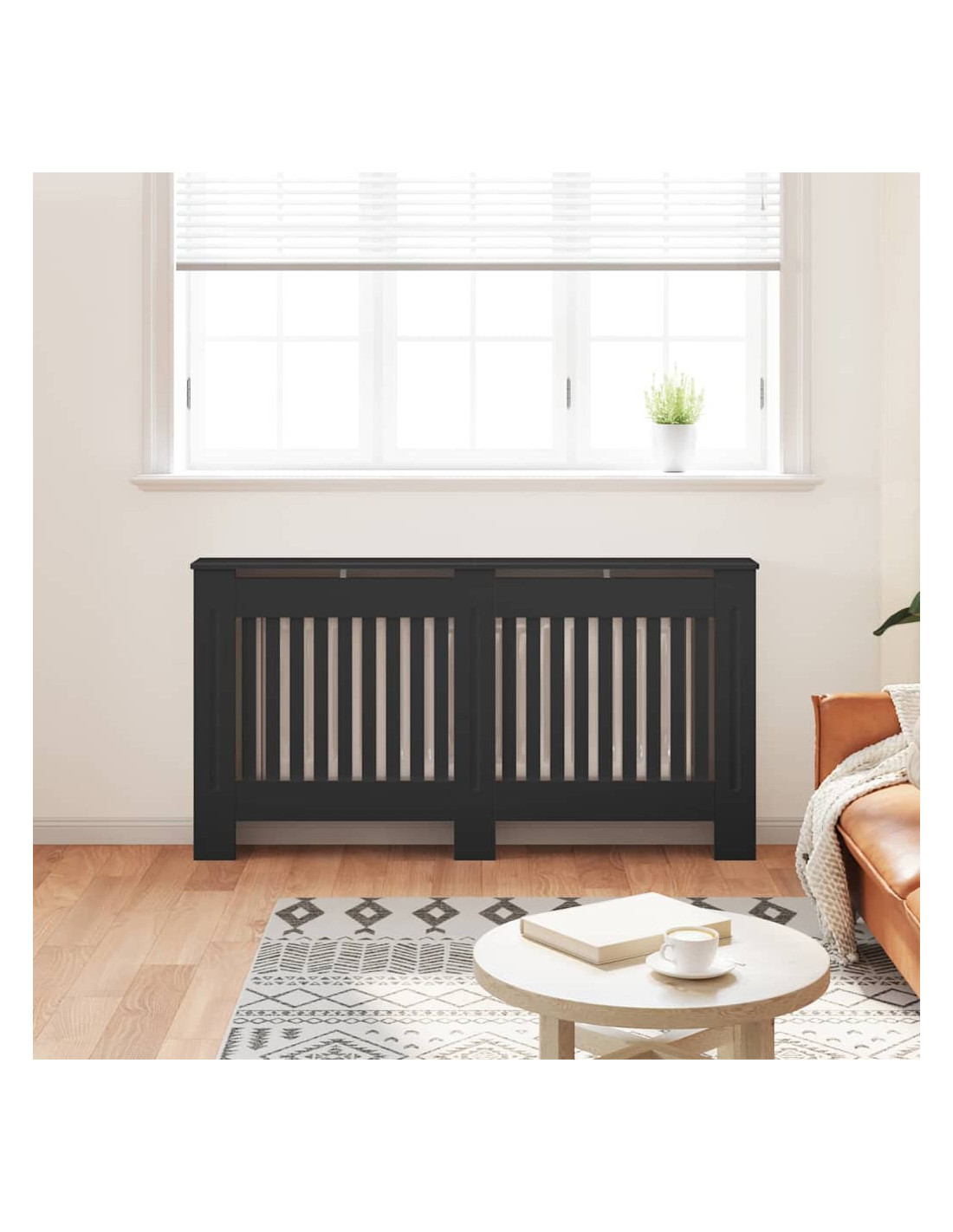 - Materiale: Fatto in legno ingegnerizzato di alta qualità, questo copriradiatore è solido e progettato per durare. Il materiale è resistente all'usura quotidiana e facile da mantenere.