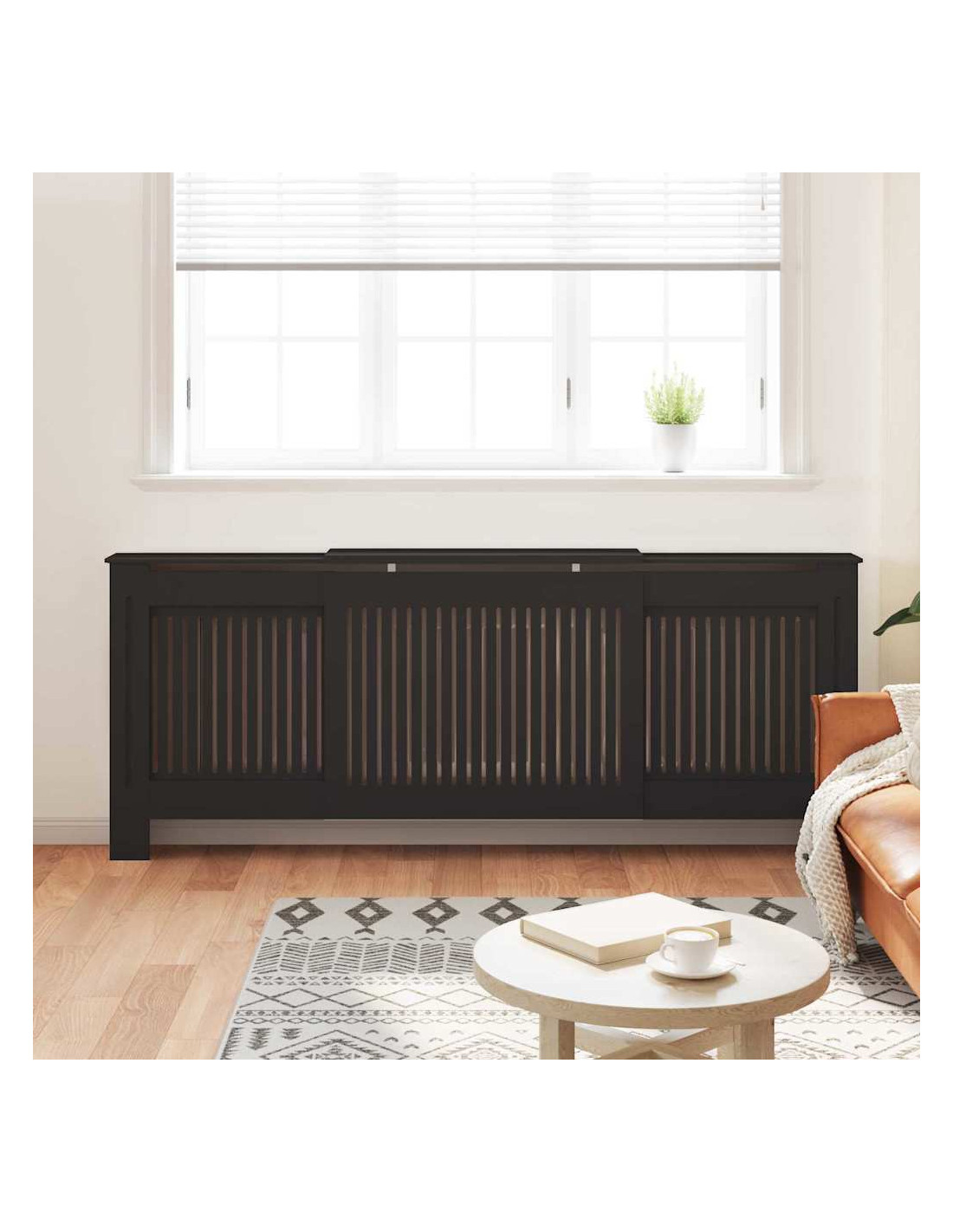 - Materiale: Fatto in legno ingegnerizzato di alta qualità, questo copriradiatore è solido e progettato per durare. Il materiale è resistente all'usura quotidiana e facile da mantenere.