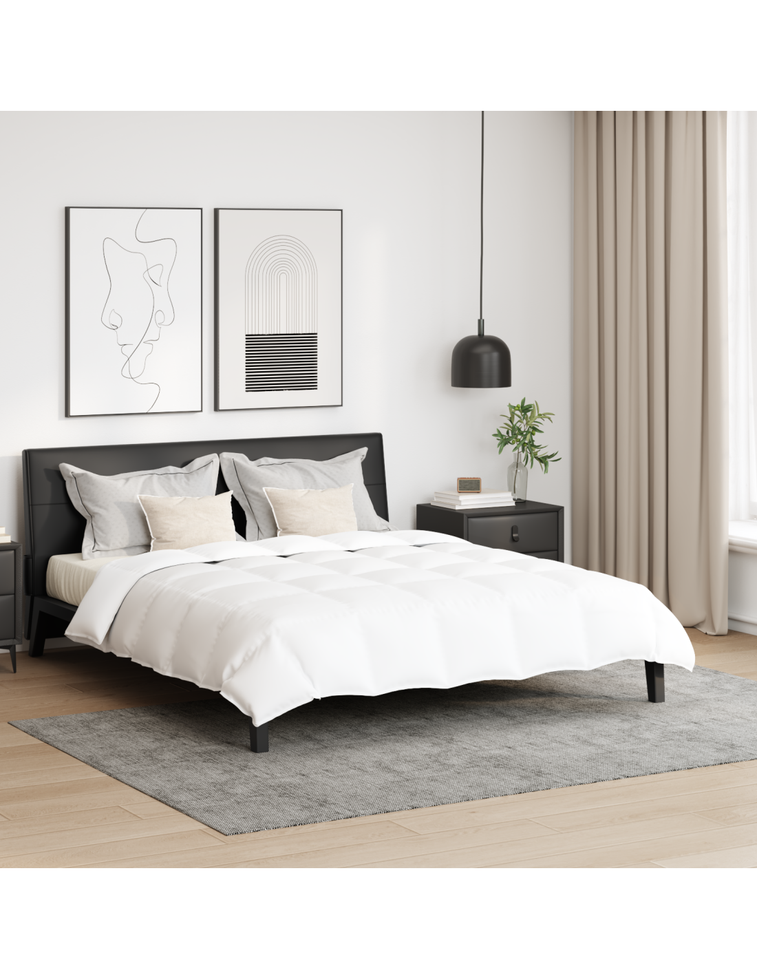 - Stile Minimalista: Con linee pulite e un design semplice, la cucitura a cassetta del piumino non solo aggiunge eleganza, ma assicura anche che l'imbottitura sia distribuita in modo uniforme, mantenendoti caldo durante le notti fredde. Questo set è un vero esempio di design minimalista, puntando su funzionalità e bellezza.