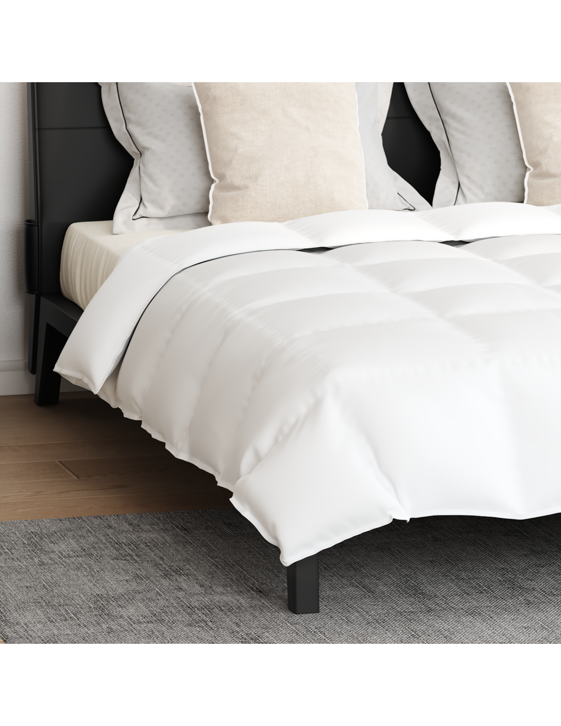 - Stile Minimalista: Con linee pulite e un design semplice, la cucitura a cassetta del piumino non solo aggiunge eleganza, ma assicura anche che l'imbottitura sia distribuita in modo uniforme, mantenendoti caldo durante le notti fredde. Questo set è un vero esempio di design minimalista, puntando su funzionalità e bellezza.
