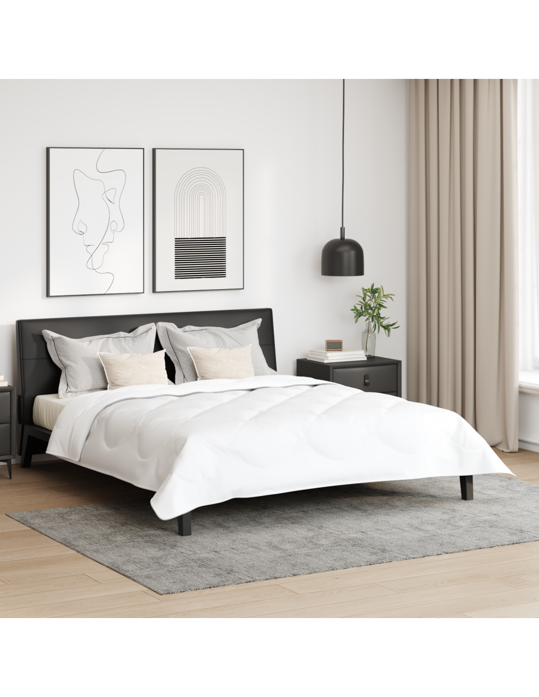- Stile Minimalista: Con il suo design sobrio, il piumone si inserisce perfettamente in qualsiasi arredamento, abbinandosi sia a stili tradizionali che moderni senza sforzo. La sua estetica pulita rende l'ambiente della stanza elegante e sofisticato.