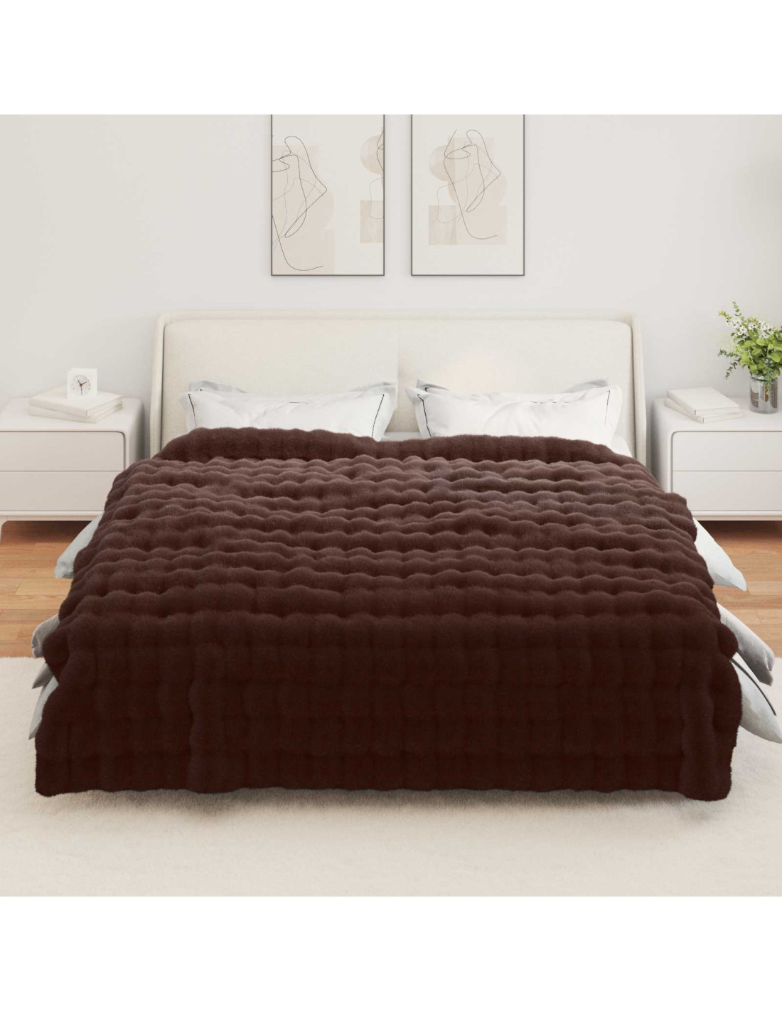 - Texture bubble soffice: La texture bubble soffice rende la coperta super piacevole al tatto, perfetta per le serate fresche, ogni piega le dà un aspetto elegante. Si abbina facilmente al design chic della pelliccia finta, aggiungendo calore e stile alla tua stanza.