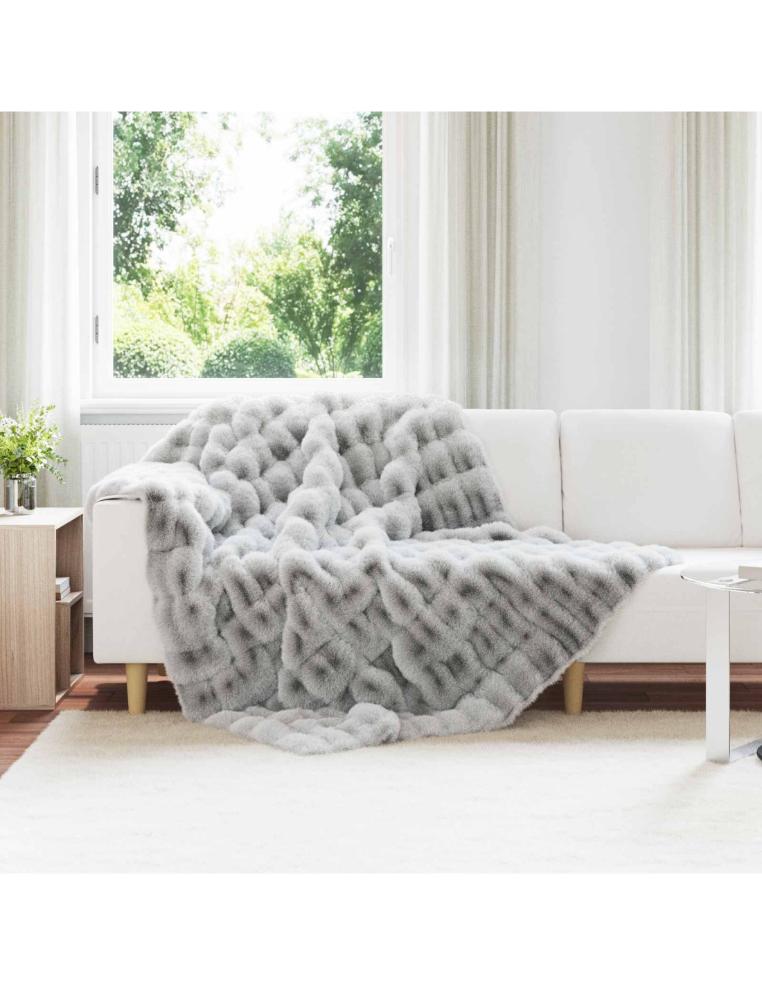 - Texture bubble soffice: La texture bubble soffice rende la coperta super piacevole al tatto, perfetta per le serate fresche, ogni piega le dà un aspetto elegante. Si abbina facilmente al design chic della pelliccia finta, aggiungendo calore e stile alla tua stanza.