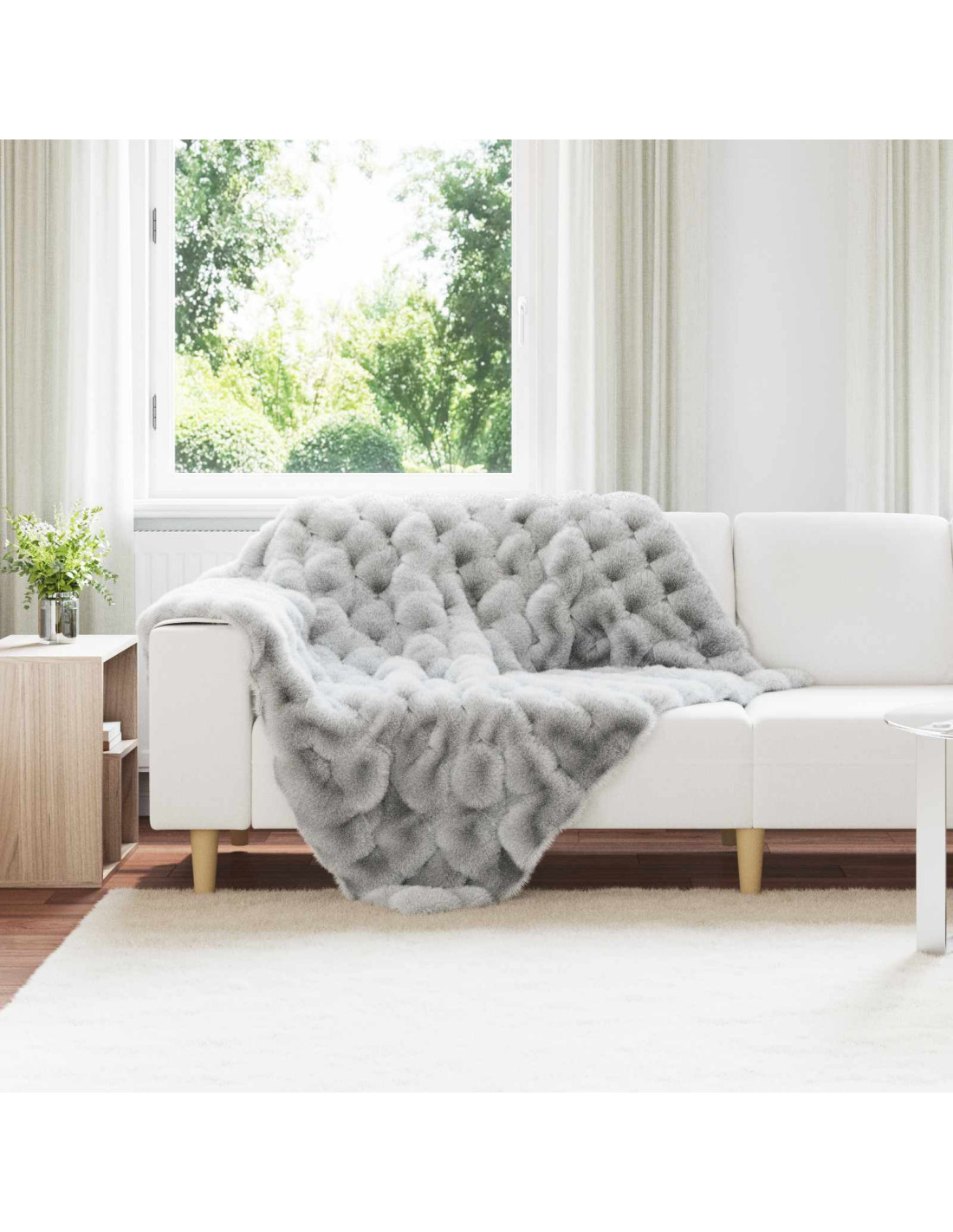- Texture bubble soffice: La texture bubble soffice rende la coperta super piacevole al tatto, perfetta per le serate fresche, ogni piega le dà un aspetto elegante. Si abbina facilmente al design chic della pelliccia finta, aggiungendo calore e stile alla tua stanza.