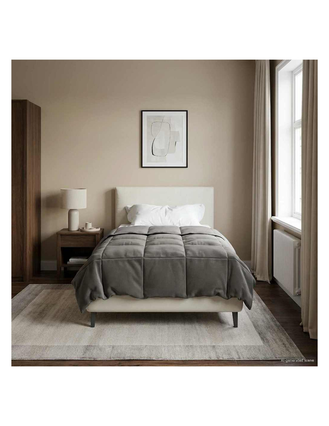 - Design trapuntato: La trapuntatura non solo rinforza la forma, ma rende anche il piumone un elemento decorativo. Questo design moderno, con il suo motivo geometrico ordinato, aggiunge un tocco di eleganza alla tua camera. Contribuisce anche alla sua durata, garantendo anni di comfort.