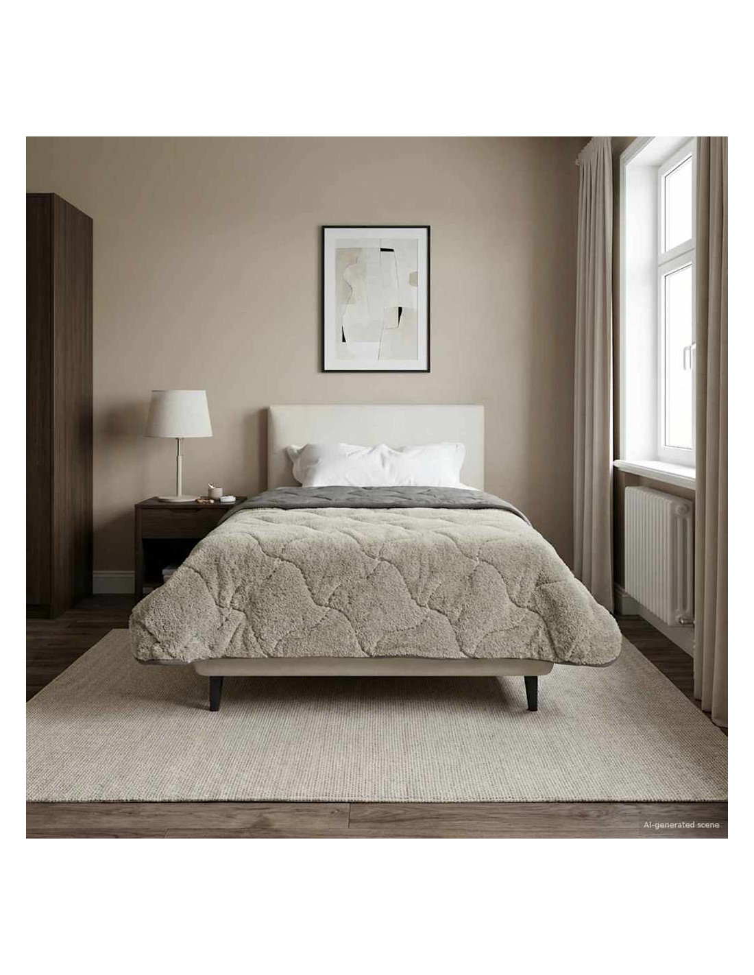 Questo piumino invernale è quello che serve alla tua camera da letto nei mesi freddi. Unisce un design moderno e praticità. Ha una forma rettangolare che dà un look pulito e minimal al tuo spazio notte. Il piumino presenta un motivo trapuntato e cuciture sovrapposte che creano un aspetto imbottito e accogliente. Realizzato in microfibra e pile teddy, ti offre un rifugio di comfort.