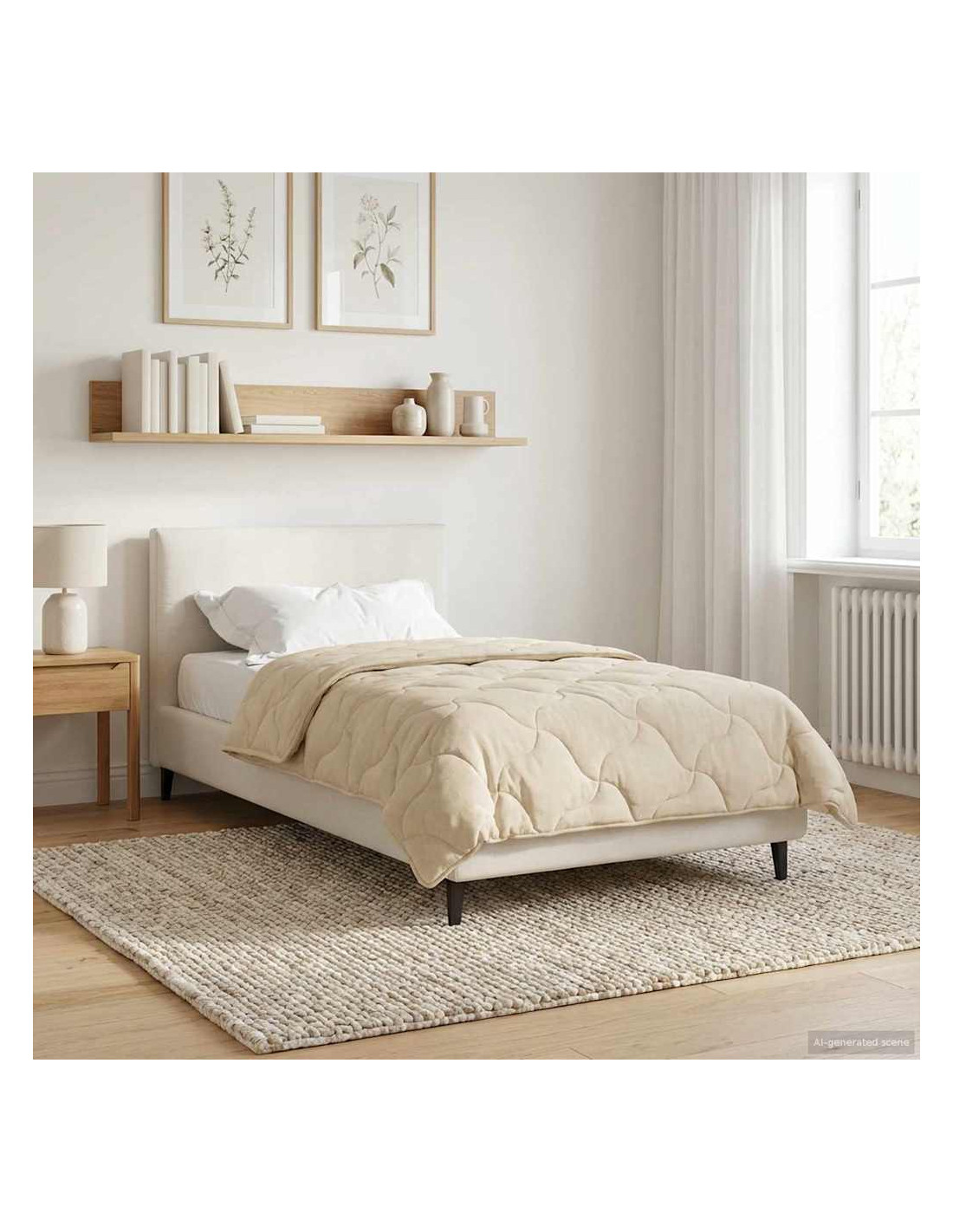 Questo piumino invernale è quello che serve alla tua camera da letto nei mesi freddi. Unisce un design moderno e praticità. Ha una forma rettangolare che dà un look pulito e minimal al tuo spazio notte. Il piumino presenta un motivo trapuntato e cuciture sovrapposte che creano un aspetto imbottito e accogliente. Realizzato in microfibra e pile teddy, ti offre un rifugio di comfort.