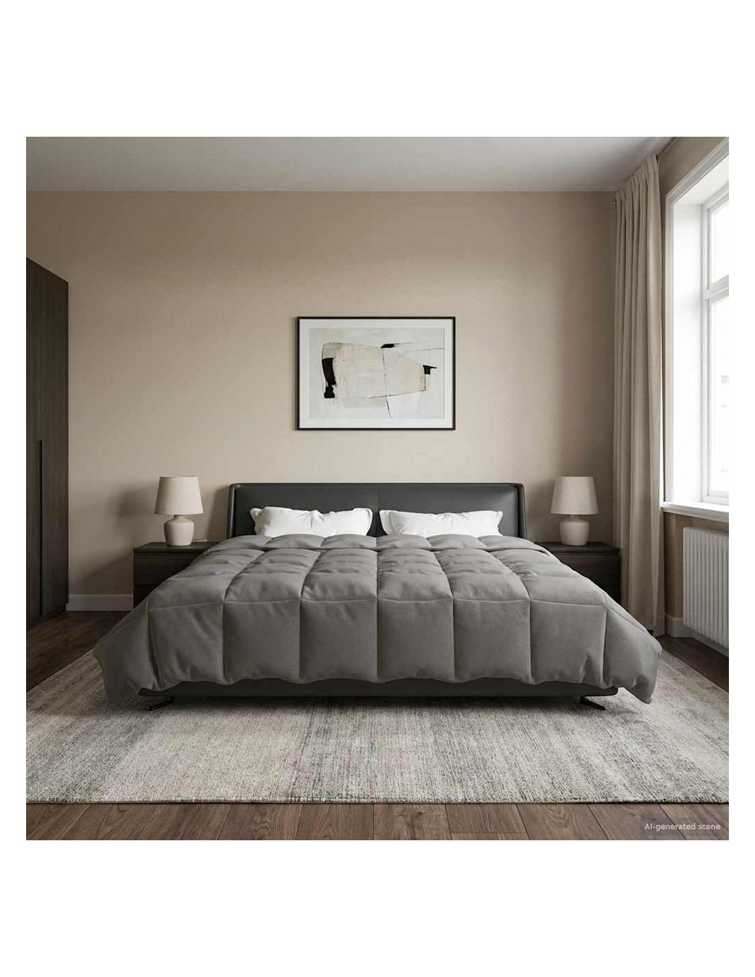 - Design trapuntato: La trapuntatura non solo rinforza la forma, ma rende anche il piumone un elemento decorativo. Questo design moderno, con il suo motivo geometrico ordinato, aggiunge un tocco di eleganza alla tua camera. Contribuisce anche alla sua durata, garantendo anni di comfort.