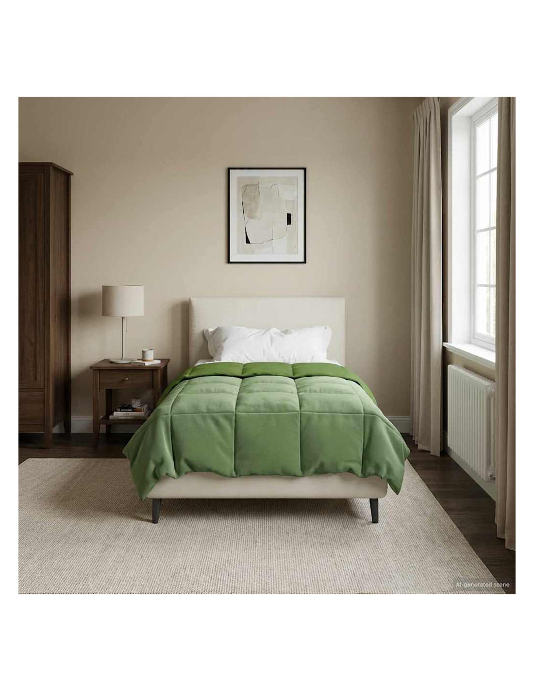 - Design trapuntato: La trapuntatura non solo rinforza la forma, ma rende anche il piumone un elemento decorativo. Questo design moderno, con il suo motivo geometrico ordinato, aggiunge un tocco di eleganza alla tua camera. Contribuisce anche alla sua durata, garantendo anni di comfort.