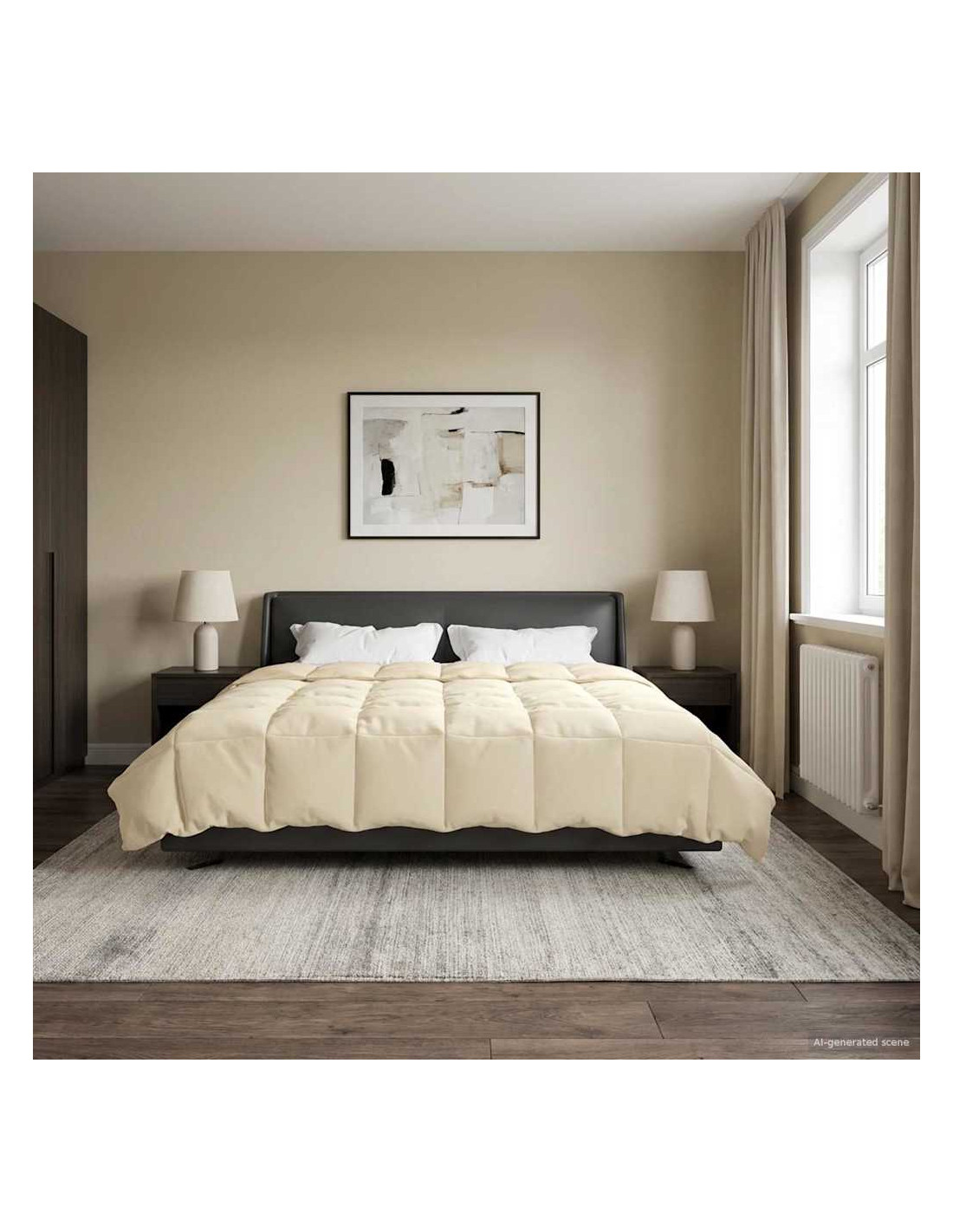 - Design trapuntato: La trapuntatura non solo rinforza la forma, ma rende anche il piumone un elemento decorativo. Questo design moderno, con il suo motivo geometrico ordinato, aggiunge un tocco di eleganza alla tua camera. Contribuisce anche alla sua durata, garantendo anni di comfort.