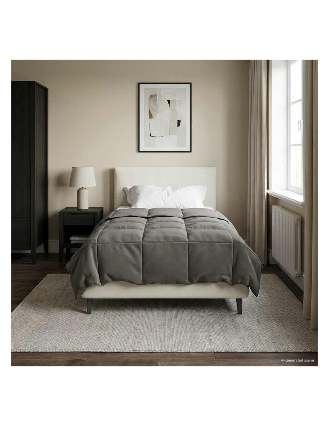 Questo piumone pensato per tutto l'anno trasforma la tua camera in un rifugio accogliente in ogni stagione. Con il suo design moderno e linee pulite, si integra perfettamente in qualsiasi arredamento, offrendo comfort ai massimi livelli. Che tu sia a casa in una fredda notte d'inverno o desideri una copertura leggera in estate, la sua versatilità e il design trapuntato lo rendono l'ideale per una buona notte di sonno.
