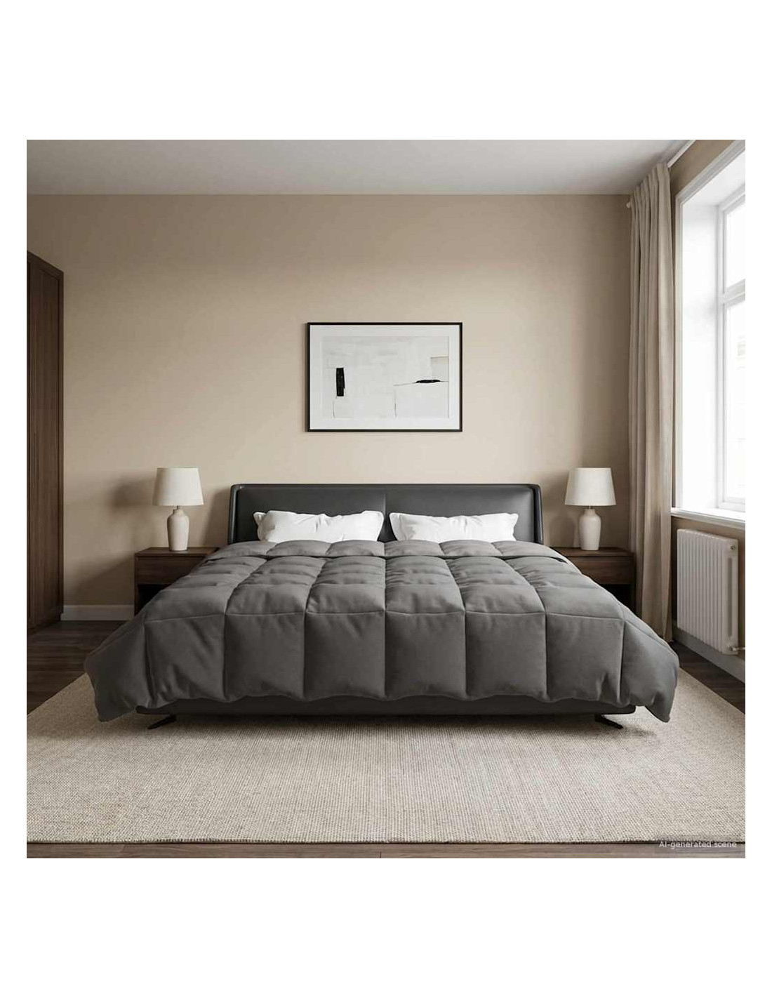 Questo piumone pensato per tutto l'anno trasforma la tua camera in un rifugio accogliente in ogni stagione. Con il suo design moderno e linee pulite, si integra perfettamente in qualsiasi arredamento, offrendo comfort ai massimi livelli. Che tu sia a casa in una fredda notte d'inverno o desideri una copertura leggera in estate, la sua versatilità e il design trapuntato lo rendono l'ideale per una buona notte di sonno.