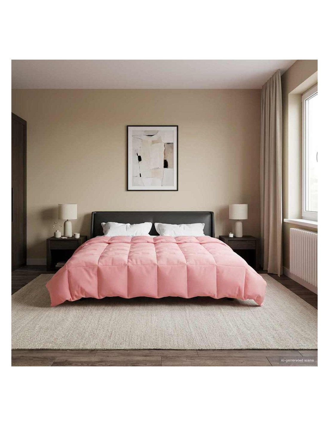- Materiale in microfibra: Realizzato in microfibra 100% poliestere, questo piumone è morbido al tatto e resiste alle pieghe, assicurando un aspetto fresco e pulito dopo ogni lavaggio.