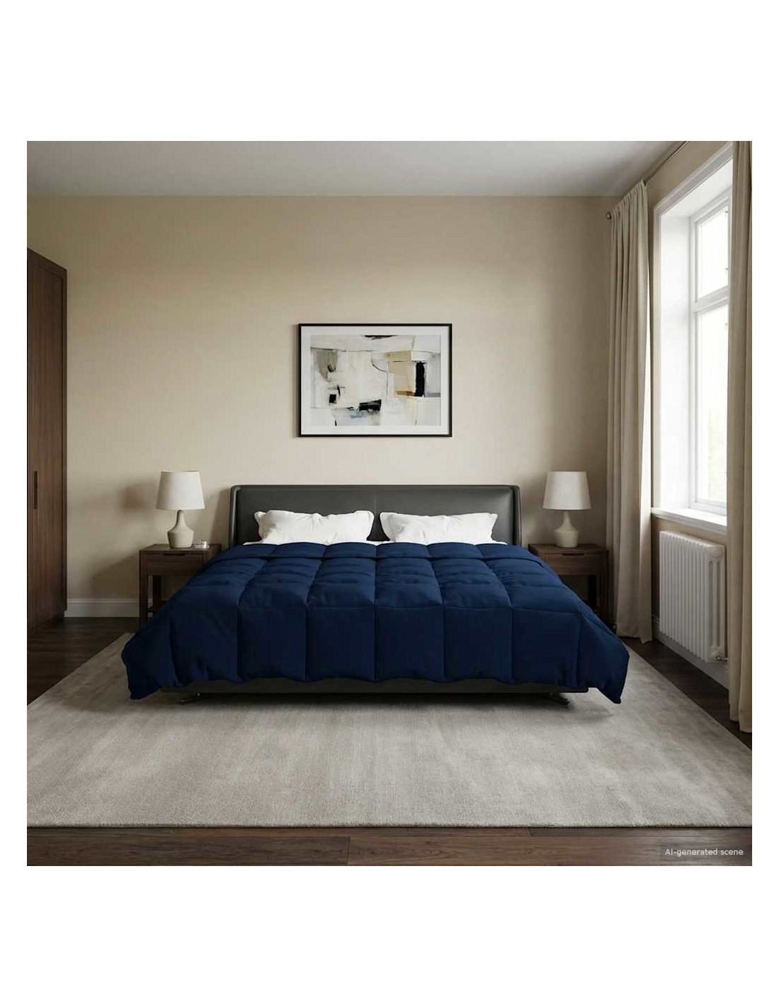 Questo piumone pensato per tutto l'anno trasforma la tua camera in un rifugio accogliente in ogni stagione. Con il suo design moderno e linee pulite, si integra perfettamente in qualsiasi arredamento, offrendo comfort ai massimi livelli. Che tu sia a casa in una fredda notte d'inverno o desideri una copertura leggera in estate, la sua versatilità e il design trapuntato lo rendono l'ideale per una buona notte di sonno.