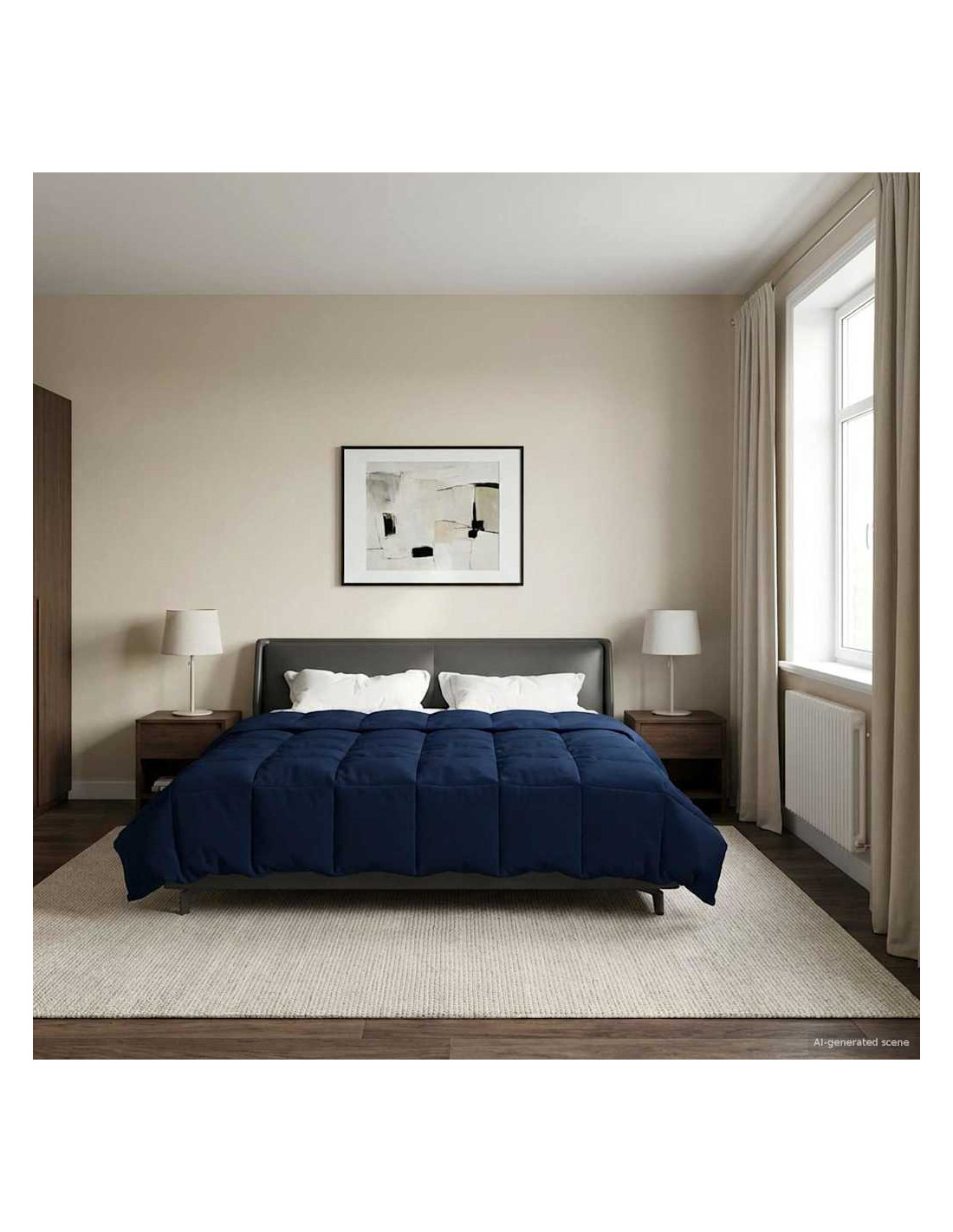 Questo piumone pensato per tutto l'anno trasforma la tua camera in un rifugio accogliente in ogni stagione. Con il suo design moderno e linee pulite, si integra perfettamente in qualsiasi arredamento, offrendo comfort ai massimi livelli. Che tu sia a casa in una fredda notte d'inverno o desideri una copertura leggera in estate, la sua versatilità e il design trapuntato lo rendono l'ideale per una buona notte di sonno.