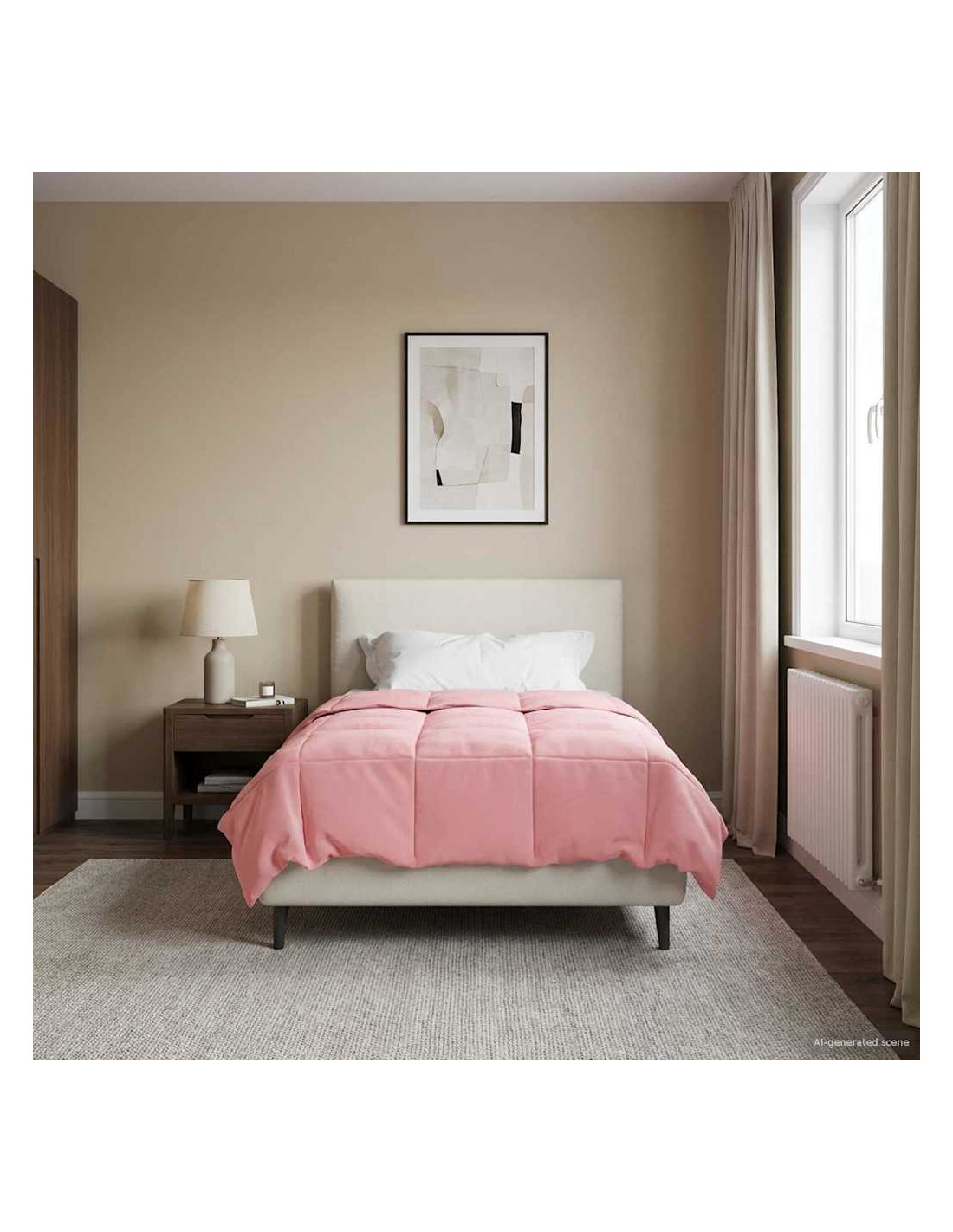 - Microfibra di qualità: Realizzato in microfibra, questo piumino offre un tocco morbido e veloce, ideale per un sonno confortevole. La microfibra è resistente alle pieghe e mantiene il suo aspetto fresco nel tempo, rendendo il piumino un elemento chiave della tua casa, offrendo comfort e stile di notte in notte.