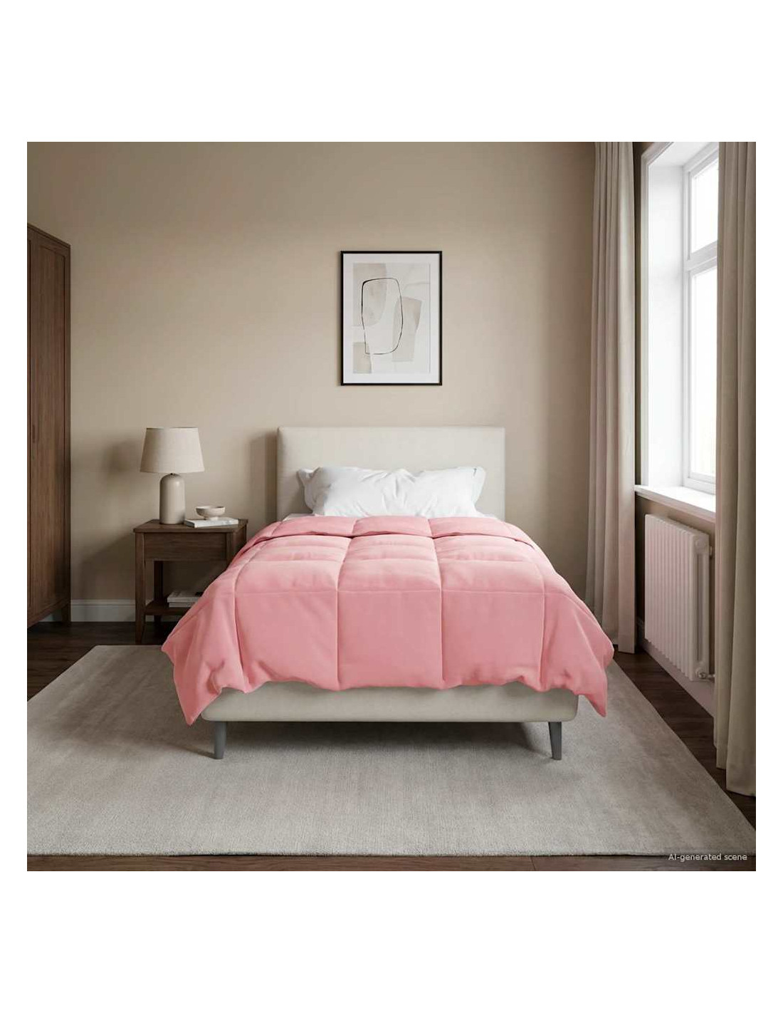 - Microfibra di qualità: Realizzato in microfibra, questo piumino offre un tocco morbido e veloce, ideale per un sonno confortevole. La microfibra è resistente alle pieghe e mantiene il suo aspetto fresco nel tempo, rendendo il piumino un elemento chiave della tua casa, offrendo comfort e stile di notte in notte.