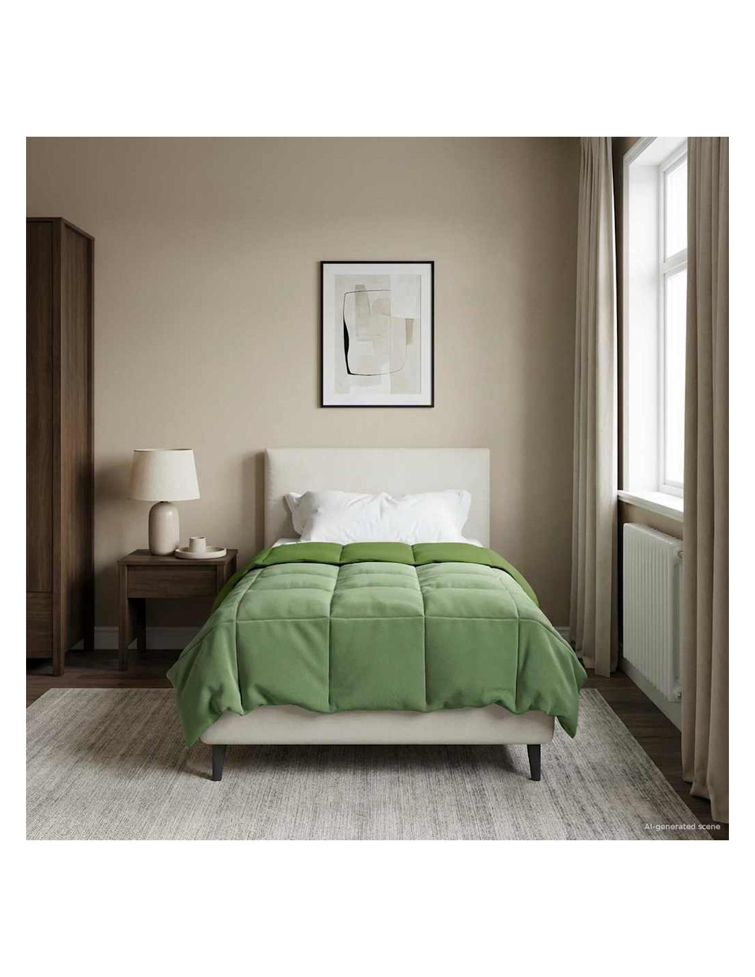 - Microfibra di qualità: Realizzato in microfibra, questo piumino offre un tocco morbido e veloce, ideale per un sonno confortevole. La microfibra è resistente alle pieghe e mantiene il suo aspetto fresco nel tempo, rendendo il piumino un elemento chiave della tua casa, offrendo comfort e stile di notte in notte.