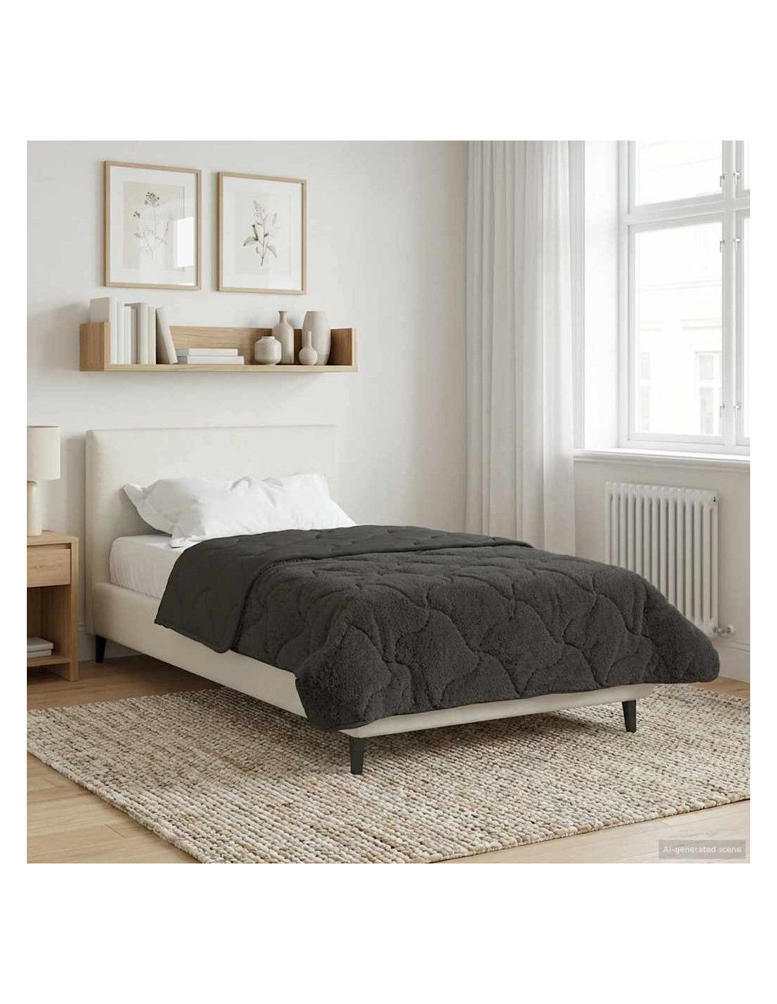 Questo piumino invernale è quello che serve alla tua camera da letto nei mesi freddi. Unisce un design moderno e praticità. Ha una forma rettangolare che dà un look pulito e minimal al tuo spazio notte. Il piumino presenta un motivo trapuntato e cuciture sovrapposte che creano un aspetto imbottito e accogliente. Realizzato in microfibra e pile teddy, ti offre un rifugio di comfort.
