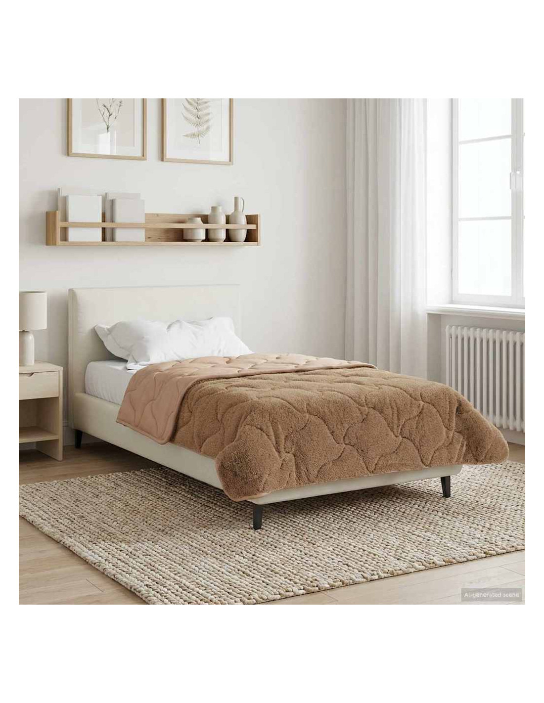 Questo piumino invernale è quello che serve alla tua camera da letto nei mesi freddi. Unisce un design moderno e praticità. Ha una forma rettangolare che dà un look pulito e minimal al tuo spazio notte. Il piumino presenta un motivo trapuntato e cuciture sovrapposte che creano un aspetto imbottito e accogliente. Realizzato in microfibra e pile teddy, ti offre un rifugio di comfort.