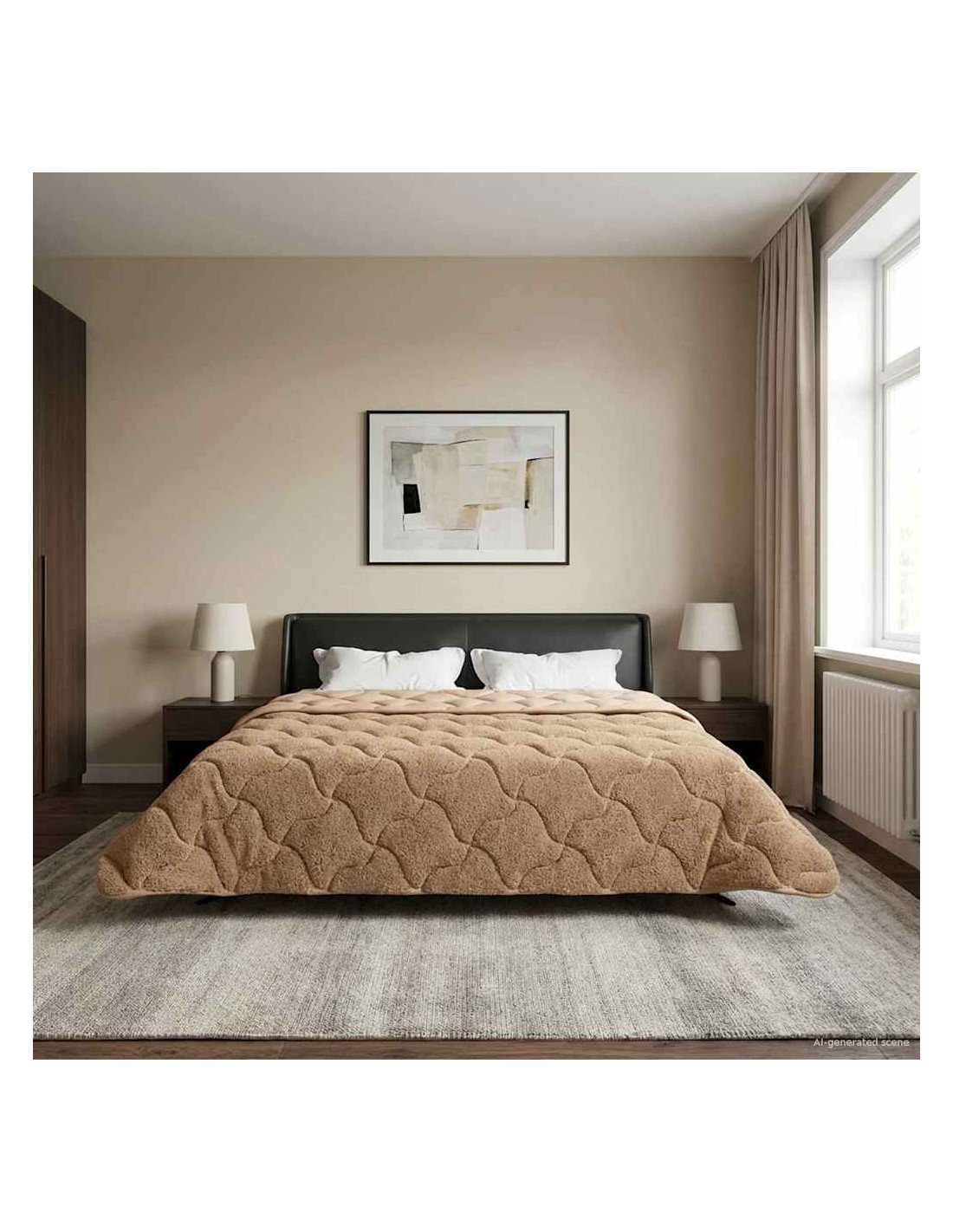Questo piumino invernale è quello che serve alla tua camera da letto nei mesi freddi. Unisce un design moderno e praticità. Ha una forma rettangolare che dà un look pulito e minimal al tuo spazio notte. Il piumino presenta un motivo trapuntato e cuciture sovrapposte che creano un aspetto imbottito e accogliente. Realizzato in microfibra e pile teddy, ti offre un rifugio di comfort.