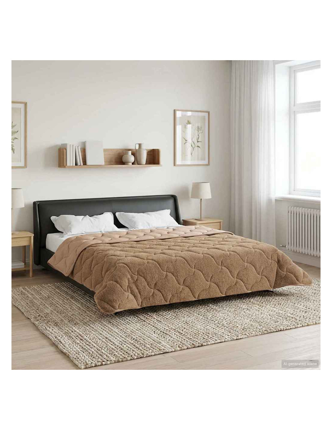 Questo piumino invernale è quello che serve alla tua camera da letto nei mesi freddi. Unisce un design moderno e praticità. Ha una forma rettangolare che dà un look pulito e minimal al tuo spazio notte. Il piumino presenta un motivo trapuntato e cuciture sovrapposte che creano un aspetto imbottito e accogliente. Realizzato in microfibra e pile teddy, ti offre un rifugio di comfort.