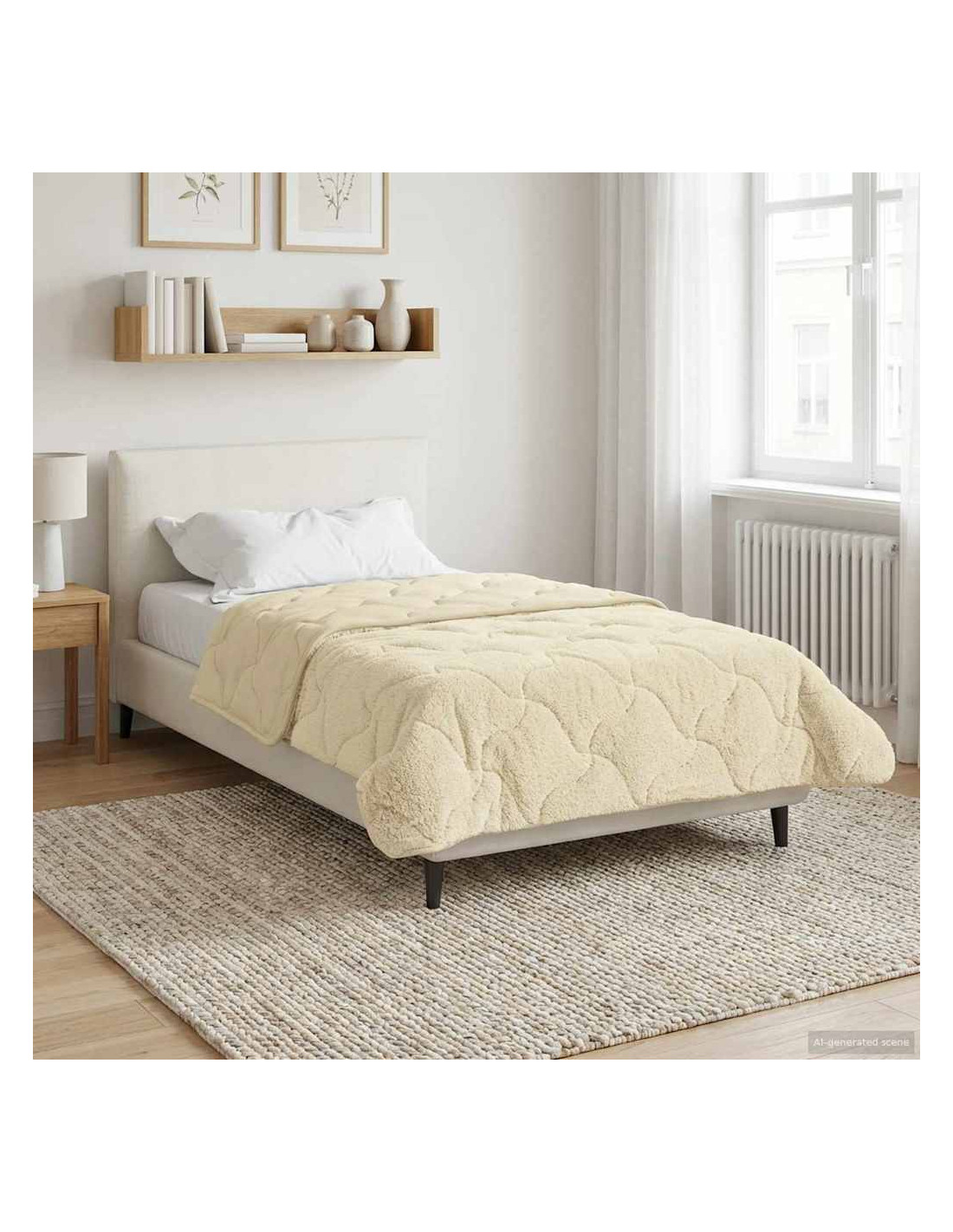 Questo piumino invernale è quello che serve alla tua camera da letto nei mesi freddi. Unisce un design moderno e praticità. Ha una forma rettangolare che dà un look pulito e minimal al tuo spazio notte. Il piumino presenta un motivo trapuntato e cuciture sovrapposte che creano un aspetto imbottito e accogliente. Realizzato in microfibra e pile teddy, ti offre un rifugio di comfort.
