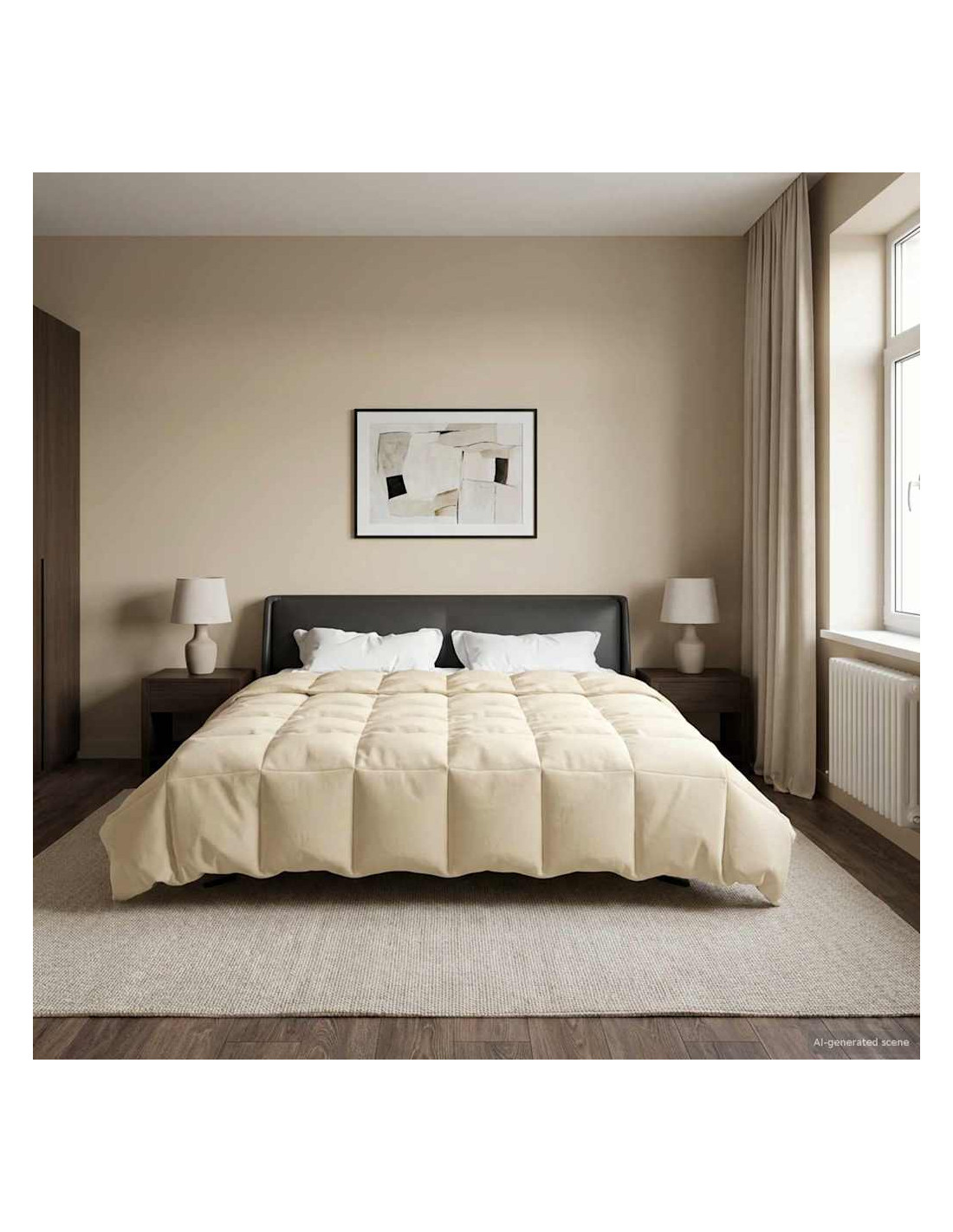 Questo piumone pensato per tutto l'anno trasforma la tua camera in un rifugio accogliente in ogni stagione. Con il suo design moderno e linee pulite, si integra perfettamente in qualsiasi arredamento, offrendo comfort ai massimi livelli. Che tu sia a casa in una fredda notte d'inverno o desideri una copertura leggera in estate, la sua versatilità e il design trapuntato lo rendono l'ideale per una buona notte di sonno. Materiale in microfibra: Realizzato in microfibra 100% poliestere, questo piumone è morbido al tatto e resiste alle pieghe, assicurando un aspetto fresco e pulito dopo ogni lavaggio. Imbottitura versatile: Grazie alla fibra innovativa, offre un equilibrio perfetto tra calore e traspirabilità, mantenendoti accogliente in inverno e fresco in estate. Design trapuntato: Con un motivo accattivante, arricchisce la tua camera da letto e assicura che l'imbottitura sia ben distribuita, evitando grumi e offrendo comfort costante. Design double-face: Un lato è in morbido velluto, ideale nei mesi freddi, mentre l'altro in microfibra è traspirante, mantenendoti fresco quando fa caldo. Manutenzione semplice: Lavabile in lavatrice in acqua fredda con colori simili; asciuga in asciugatrice a bassa temperatura con una pallina da tennis per mantenerlo morbido o lascialo asciugare al sole.