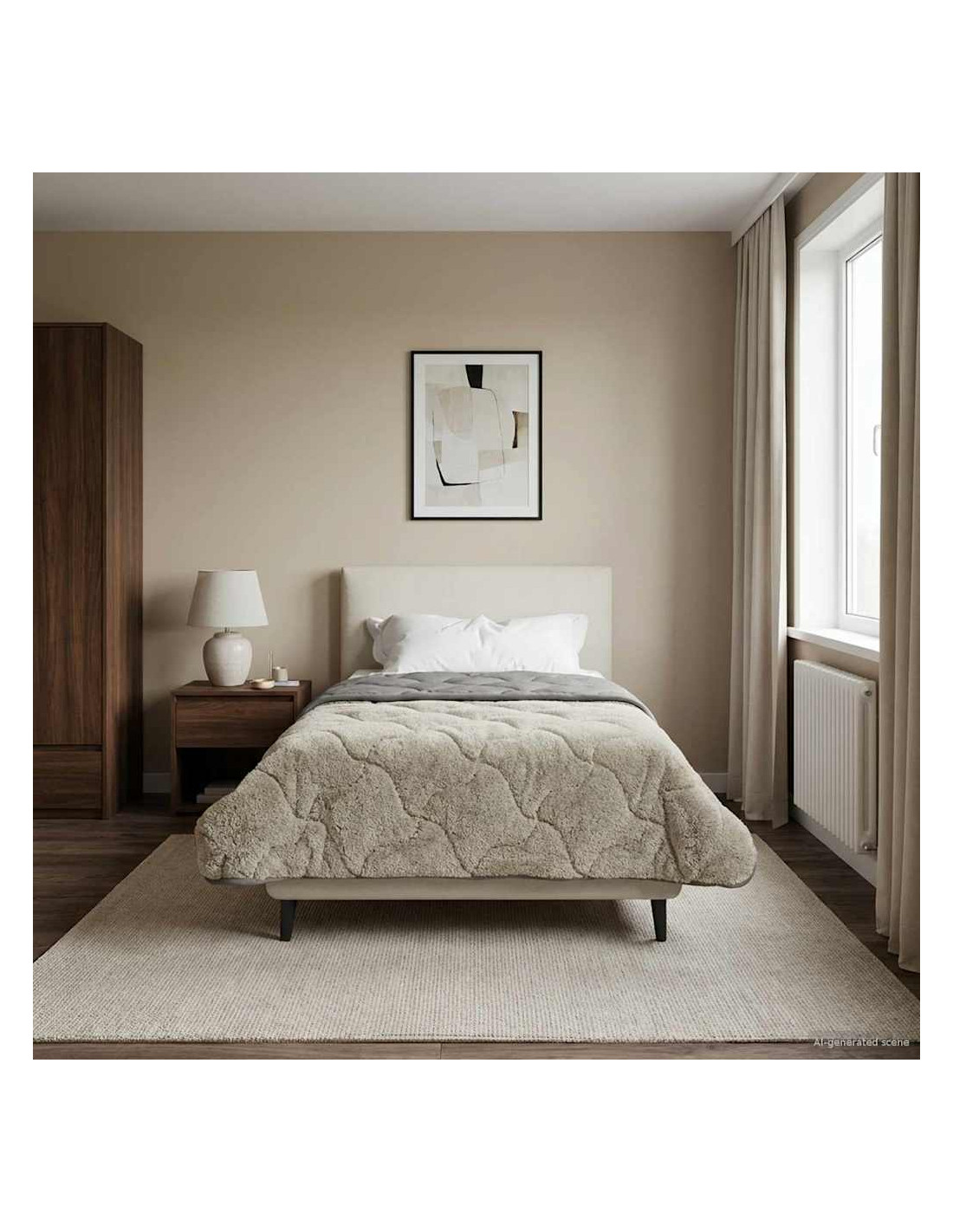 Questo piumino invernale è quello che serve alla tua camera da letto nei mesi freddi. Unisce un design moderno e praticità. Ha una forma rettangolare che dà un look pulito e minimal al tuo spazio notte. Il piumino presenta un motivo trapuntato e cuciture sovrapposte che creano un aspetto imbottito e accogliente. Realizzato in microfibra e pile teddy, ti offre un rifugio di comfort. Materiale in microfibra premium: Questo piumino è fatto in microfibra e pile teddy, per un tocco morbido e super confortevole. Questi materiali hanno una buona traspirabilità, assicurandoti sonni sereni anche nelle notti fredde. La microfibra è resistente e non si stropiccia, mentre il pile è morbido al tatto. Design a doppia faccia: Questo piumino ha un lato in microfibra liscio e un lato in pile teddy morbidissimo. Con questo design a doppia faccia, ti offre uno stile versatile e comfort. Ottima traspirabilità: I materiali traspiranti aiutano a far circolare l'aria, favorendo sonni tranquilli. Mantiene la giusta temperatura evitando il surriscaldamento. Istruzioni per la cura convenienti: Facile da curare, puoi lavarlo in lavatrice a freddo con colori simili e asciugarlo a bassa temperatura con una pallina da tennis per farlo gonfiare di nuovo, oppure scuoterlo al sole. Stile moderno per ogni luogo: Aggiungi un tocco di semplicità e funzionalità con il design moderno di questo piumino. È perfetto per camere da letto interne, unisce eleganza e comfort per chi ama la biancheria bella.