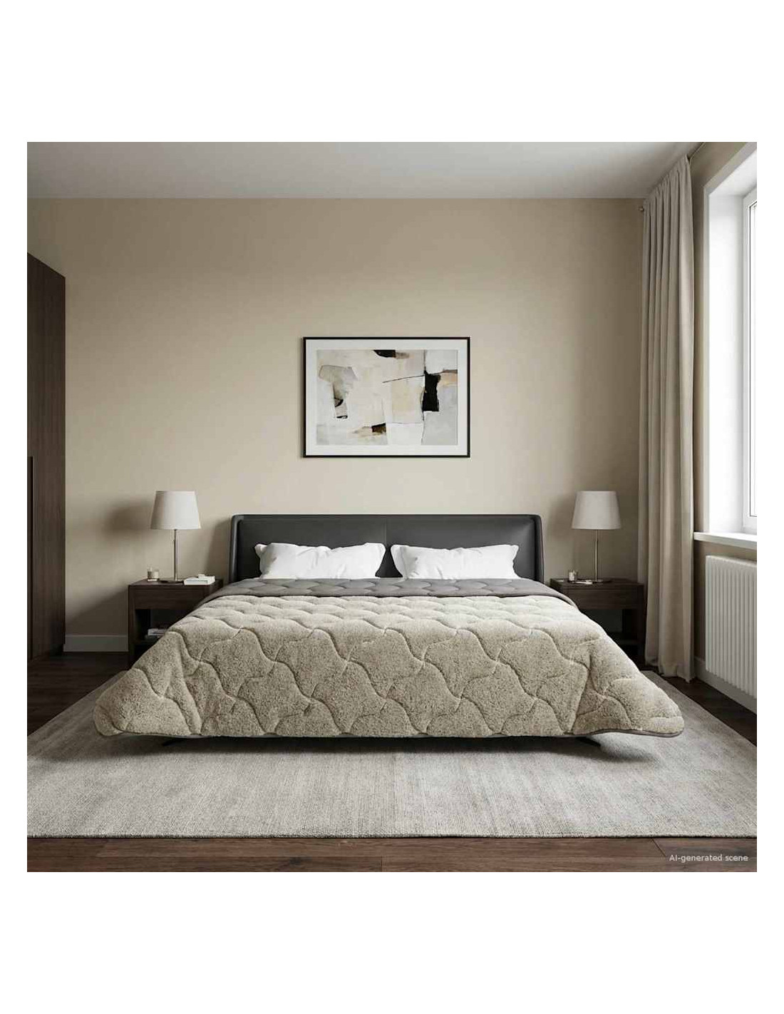Questo piumino invernale è quello che serve alla tua camera da letto nei mesi freddi. Unisce un design moderno e praticità. Ha una forma rettangolare che dà un look pulito e minimal al tuo spazio notte. Il piumino presenta un motivo trapuntato e cuciture sovrapposte che creano un aspetto imbottito e accogliente. Realizzato in microfibra e pile teddy, ti offre un rifugio di comfort. Materiale in microfibra premium: Questo piumino è fatto in microfibra e pile teddy, per un tocco morbido e super confortevole. Questi materiali hanno una buona traspirabilità, assicurandoti sonni sereni anche nelle notti fredde. La microfibra è resistente e non si stropiccia, mentre il pile è morbido al tatto. Design a doppia faccia: Questo piumino ha un lato in microfibra liscio e un lato in pile teddy morbidissimo. Con questo design a doppia faccia, ti offre uno stile versatile e comfort. Ottima traspirabilità: I materiali traspiranti aiutano a far circolare l'aria, favorendo sonni tranquilli. Mantiene la giusta temperatura evitando il surriscaldamento. Istruzioni per la cura convenienti: Facile da curare, puoi lavarlo in lavatrice a freddo con colori simili e asciugarlo a bassa temperatura con una pallina da tennis per farlo gonfiare di nuovo, oppure scuoterlo al sole. Stile moderno per ogni luogo: Aggiungi un tocco di semplicità e funzionalità con il design moderno di questo piumino. È perfetto per camere da letto interne, unisce eleganza e comfort per chi ama la biancheria bella.