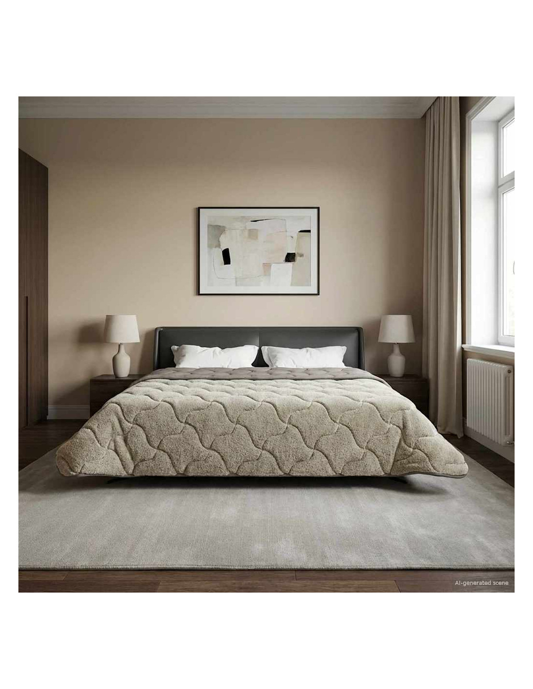 Questo piumino invernale è quello che serve alla tua camera da letto nei mesi freddi. Unisce un design moderno e praticità. Ha una forma rettangolare che dà un look pulito e minimal al tuo spazio notte. Il piumino presenta un motivo trapuntato e cuciture sovrapposte che creano un aspetto imbottito e accogliente. Realizzato in microfibra e pile teddy, ti offre un rifugio di comfort. Materiale in microfibra premium: Questo piumino è fatto in microfibra e pile teddy, per un tocco morbido e super confortevole. Questi materiali hanno una buona traspirabilità, assicurandoti sonni sereni anche nelle notti fredde. La microfibra è resistente e non si stropiccia, mentre il pile è morbido al tatto. Design a doppia faccia: Questo piumino ha un lato in microfibra liscio e un lato in pile teddy morbidissimo. Con questo design a doppia faccia, ti offre uno stile versatile e comfort. Ottima traspirabilità: I materiali traspiranti aiutano a far circolare l'aria, favorendo sonni tranquilli. Mantiene la giusta temperatura evitando il surriscaldamento. Istruzioni per la cura convenienti: Facile da curare, puoi lavarlo in lavatrice a freddo con colori simili e asciugarlo a bassa temperatura con una pallina da tennis per farlo gonfiare di nuovo, oppure scuoterlo al sole. Stile moderno per ogni luogo: Aggiungi un tocco di semplicità e funzionalità con il design moderno di questo piumino. È perfetto per camere da letto interne, unisce eleganza e comfort per chi ama la biancheria bella.