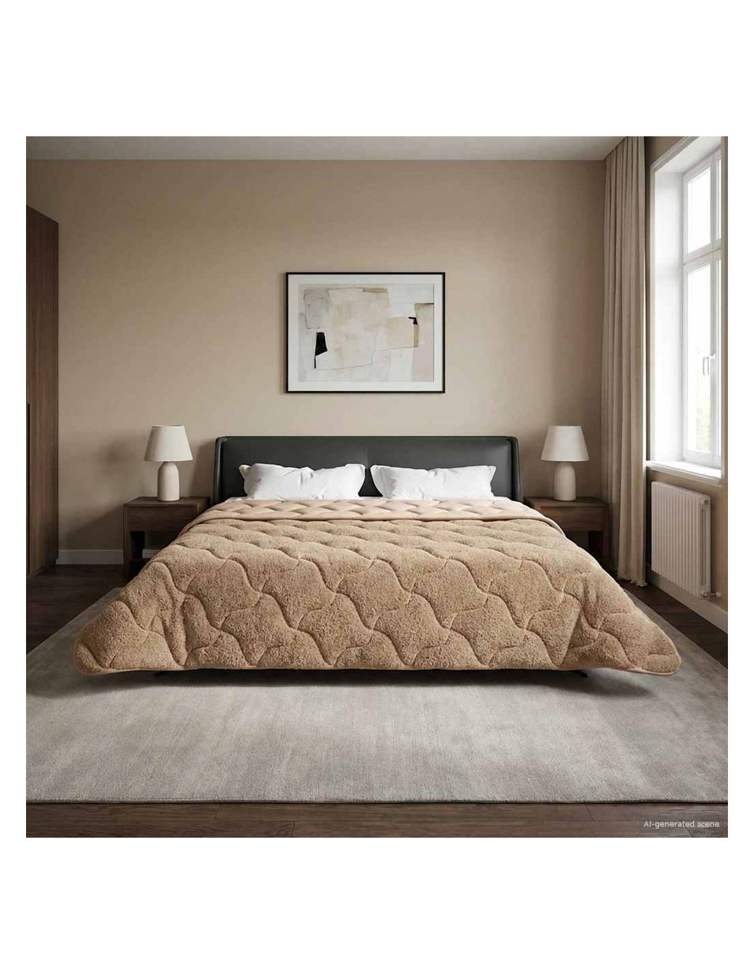 Questo piumino invernale è quello che serve alla tua camera da letto nei mesi freddi. Unisce un design moderno e praticità. Ha una forma rettangolare che dà un look pulito e minimal al tuo spazio notte. Il piumino presenta un motivo trapuntato e cuciture sovrapposte che creano un aspetto imbottito e accogliente. Realizzato in microfibra e pile teddy, ti offre un rifugio di comfort. Materiale in microfibra premium: Questo piumino è fatto in microfibra e pile teddy, per un tocco morbido e super confortevole. Questi materiali hanno una buona traspirabilità, assicurandoti sonni sereni anche nelle notti fredde. La microfibra è resistente e non si stropiccia, mentre il pile è morbido al tatto. Design a doppia faccia: Questo piumino ha un lato in microfibra liscio e un lato in pile teddy morbidissimo. Con questo design a doppia faccia, ti offre uno stile versatile e comfort. Ottima traspirabilità: I materiali traspiranti aiutano a far circolare l'aria, favorendo sonni tranquilli. Mantiene la giusta temperatura evitando il surriscaldamento. Istruzioni per la cura convenienti: Facile da curare, puoi lavarlo in lavatrice a freddo con colori simili e asciugarlo a bassa temperatura con una pallina da tennis per farlo gonfiare di nuovo, oppure scuoterlo al sole. Stile moderno per ogni luogo: Aggiungi un tocco di semplicità e funzionalità con il design moderno di questo piumino. È perfetto per camere da letto interne, unisce eleganza e comfort per chi ama la biancheria bella.