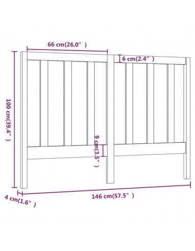 Testiera per Letto Miele 146x4x100 cm in Legno Massello di Pino
