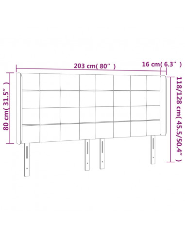 Testiera a LED Grigio Chiaro 203x16x118/128 cm in Velluto
