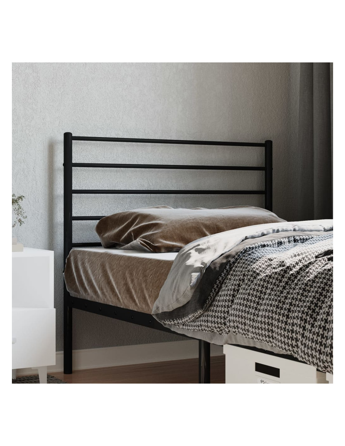 - Robusta struttura in metallo: La testiera del letto è realizzata in acciaio verniciato a polvere. L'acciaio è un materiale eccezionalmente duro e resistente, e offre straordinaria robustezza e stabilità. La verniciatura a polvere dell'acciaio crea uno strato protettivo contro l'usura.