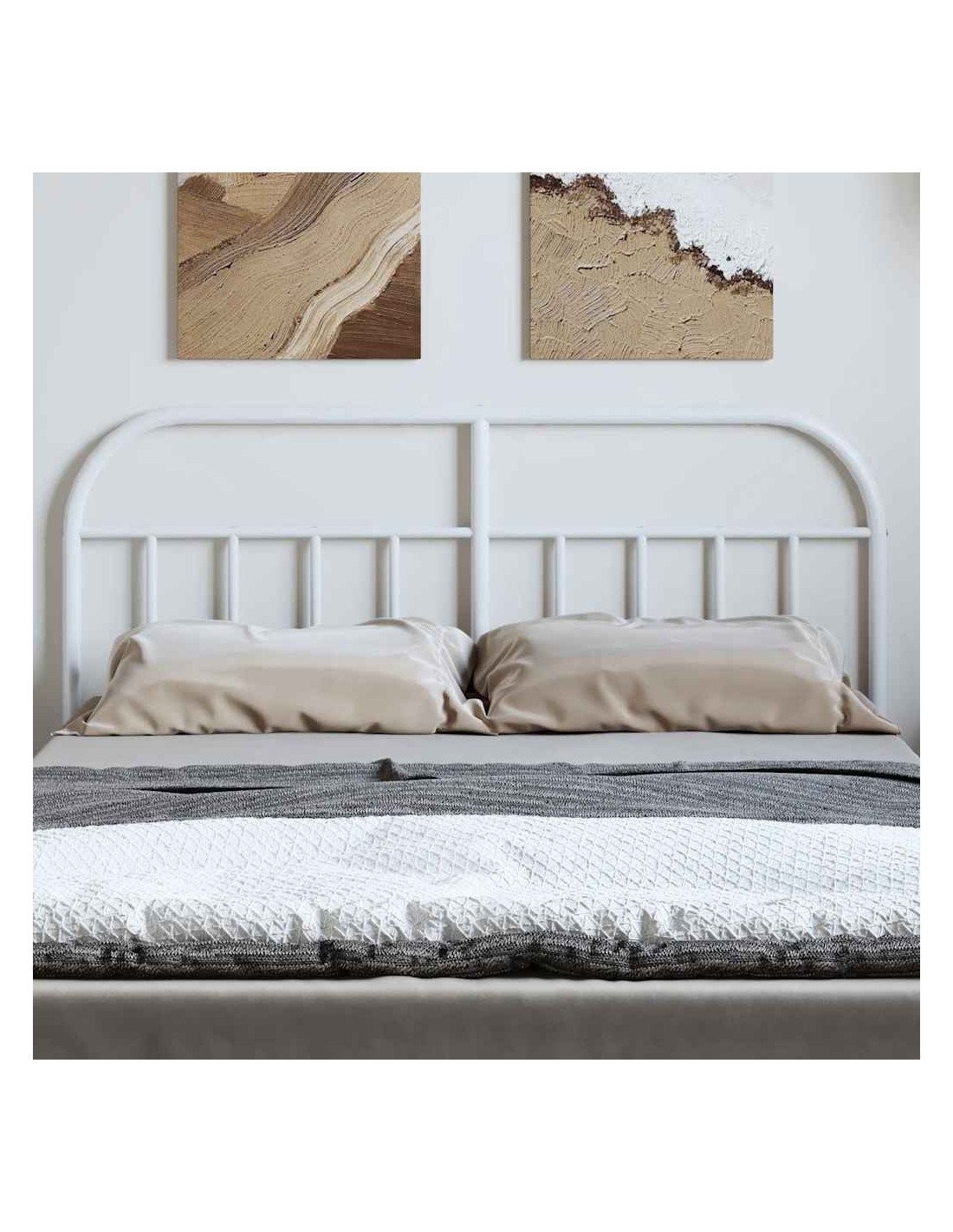 - Robusta struttura in metallo: La testiera del letto è realizzata in acciaio verniciato a polvere. L'acciaio è un materiale eccezionalmente duro e resistente, e offre straordinaria robustezza e stabilità. La verniciatura a polvere dell'acciaio crea uno strato protettivo contro l'usura.