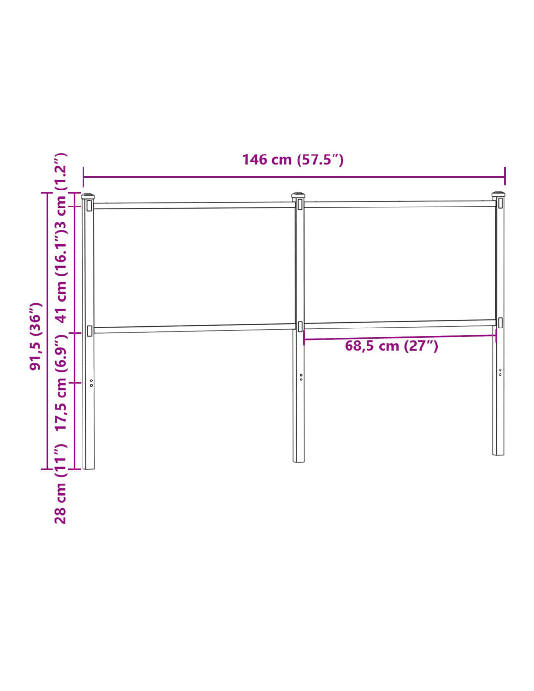- Dimensioni complessive: 146 x 3 x 91,5 cm (L x L x A)