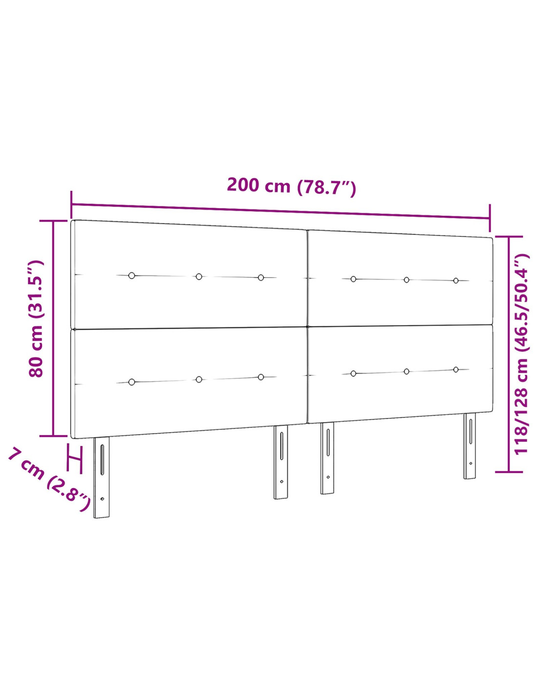 - Dimensioni complessive: 200 x 7 x 128 cm (L x P x A)