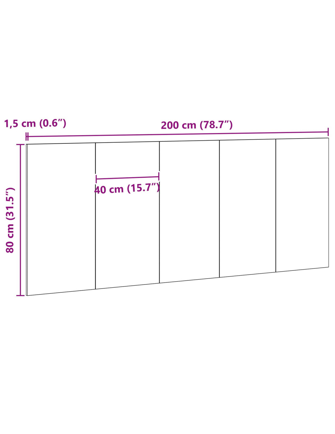 - Dimensioni complessive: 200 x 1,5 x 80 cm (L x P x A)